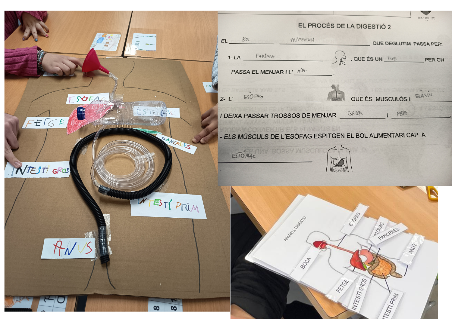 Un dels projectes de medi natural i social d’aquest curs es centra en el coneixement del sistema digestiu i la nutrició. Estem aprenent com funciona la digestió i quins òrgans hi intervenen. Volem saber quin recorregut fan els aliments i com es converteixen en nutrients. Obenim informaicó a través de videos, completant el dossier de treball, utilitzant plafons per aprendre els noms i situació dels diferents òrgans  i experimentant com es transformen els aliments dins el nostre cos. Com a treball final hem construit una maqueta del sistema digestiu.