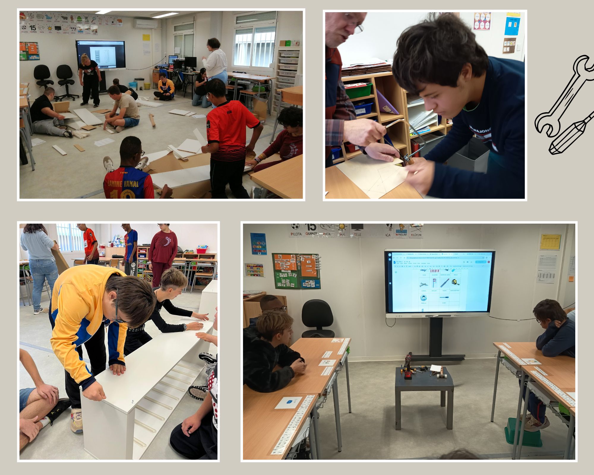 Però no ha estat tot teoria… També hem practicat muntant estanteries i mobles per a les classes que ho necessitaven. I com a tasca final, estem fent un detall de nadal de fusta.