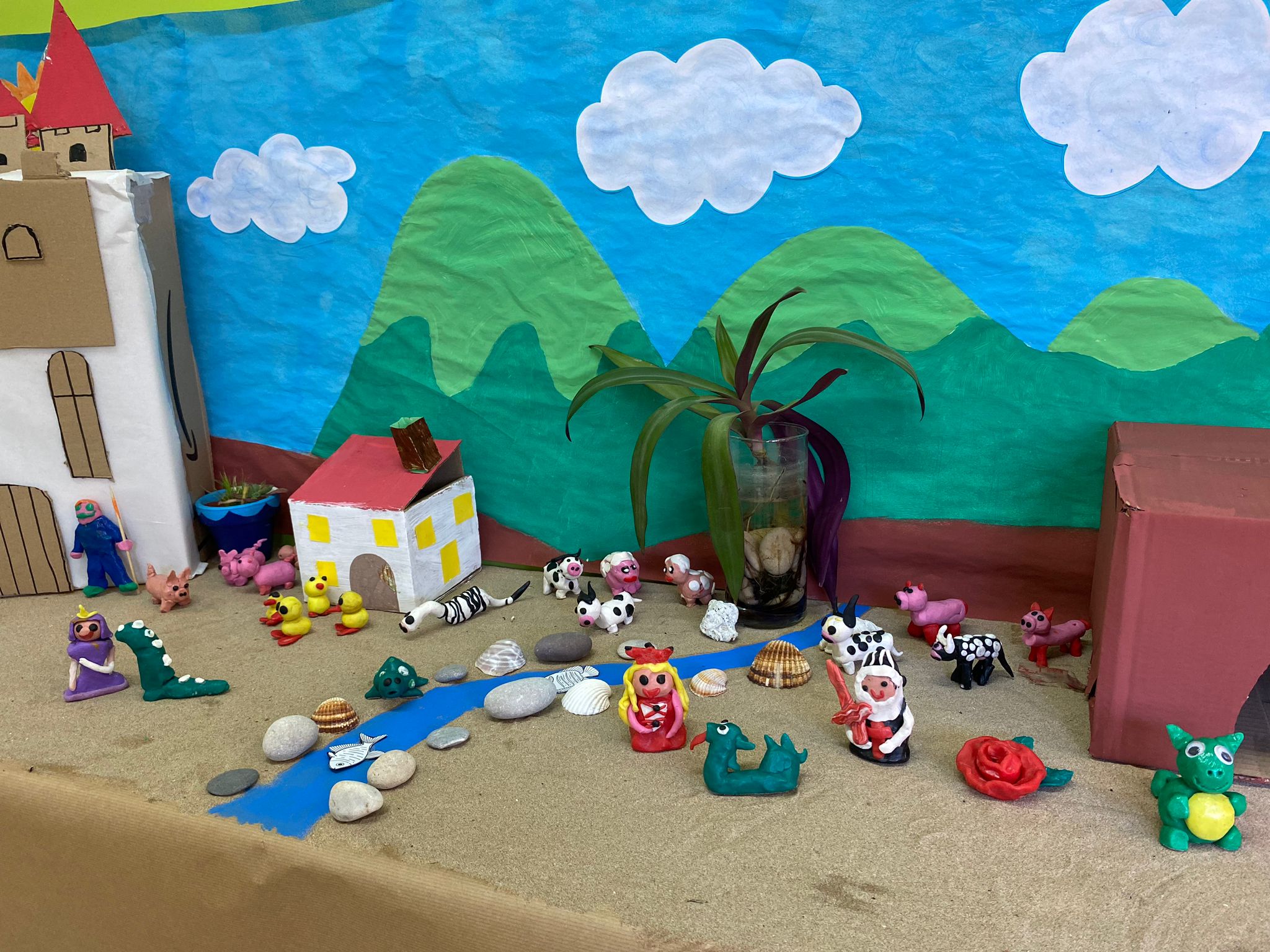 Els i les alumnes de l’escola han recreat diferents escenes de la llegenda de Sant Jordi. Per això, han desplegat tota la seva creativitat i traça per elaborar amb plastilina els diferents personatges i escenaris.
