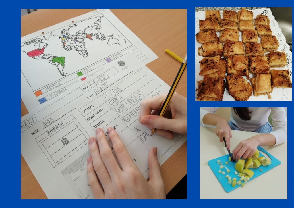 Aquest curs hem engegat un nou projecte de medi natural i social: la volta al món. Cada més treballem un país diferent. L’objectiu principal és situar-se en el món, conèixer els continents, els mars i oceans. De cada país busquem quina és la capital, l’idioma, els rius, els altres països que el limiten i pintem la bandera. Mirem vídeos i fotografies per saber quins monuments importants podem trobar-hi, com viuen , quins costums tenen…. A l’hora de cuina aprofitem per fer alguna recepta del país treballat.