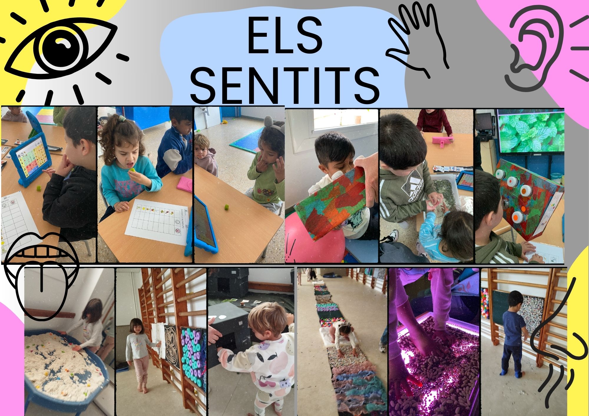 Hem recorregut camins sensorials plens de textures diferents, hem descobert un univers de fragàncies amb diverses olors per identificar i hem explorat el món dels colors i les llums per estimular la vista. Aquestes i moltes altres propostes ens han ajudat a conèixer millor el nostre entorn i a viure noves experiències a través dels sentits.