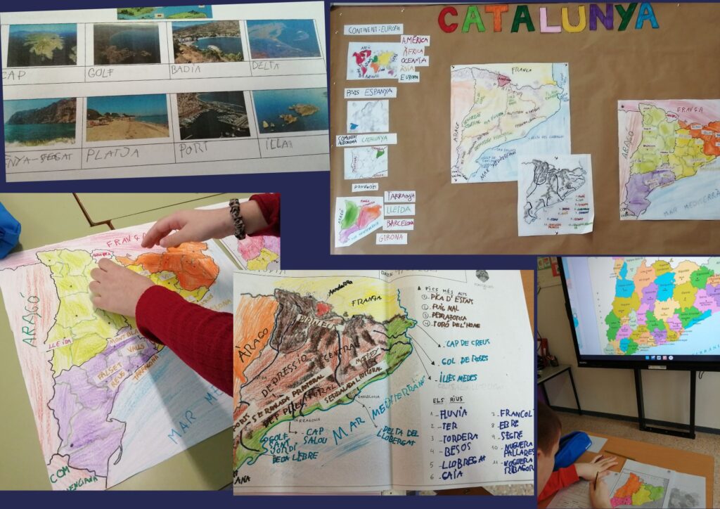 El projecte de medi del segon trimestre es centra en conèixer millor on vivim dins el món. El curs passat vam aprendre les comunitats autònomes dins d’Espanya i aquest curs ens centrem en Catalunya. Primer hem après el vocabulari bàsic del relleu de muntanya, plana i costa. Després hem completat el mapa físic de Catalunya i el polític, amb les poblacions més importants. També hem situat en un mapa el patrimoni natural i cultural de Catalunya. A l’hora de cuina vam elaborar una recepta típica catalana: coca en recapte. En acabar el projecte anirem a Catalunya en miniatura i segur que reconeixerem i situarem molts dels llocs que hem treballat.
