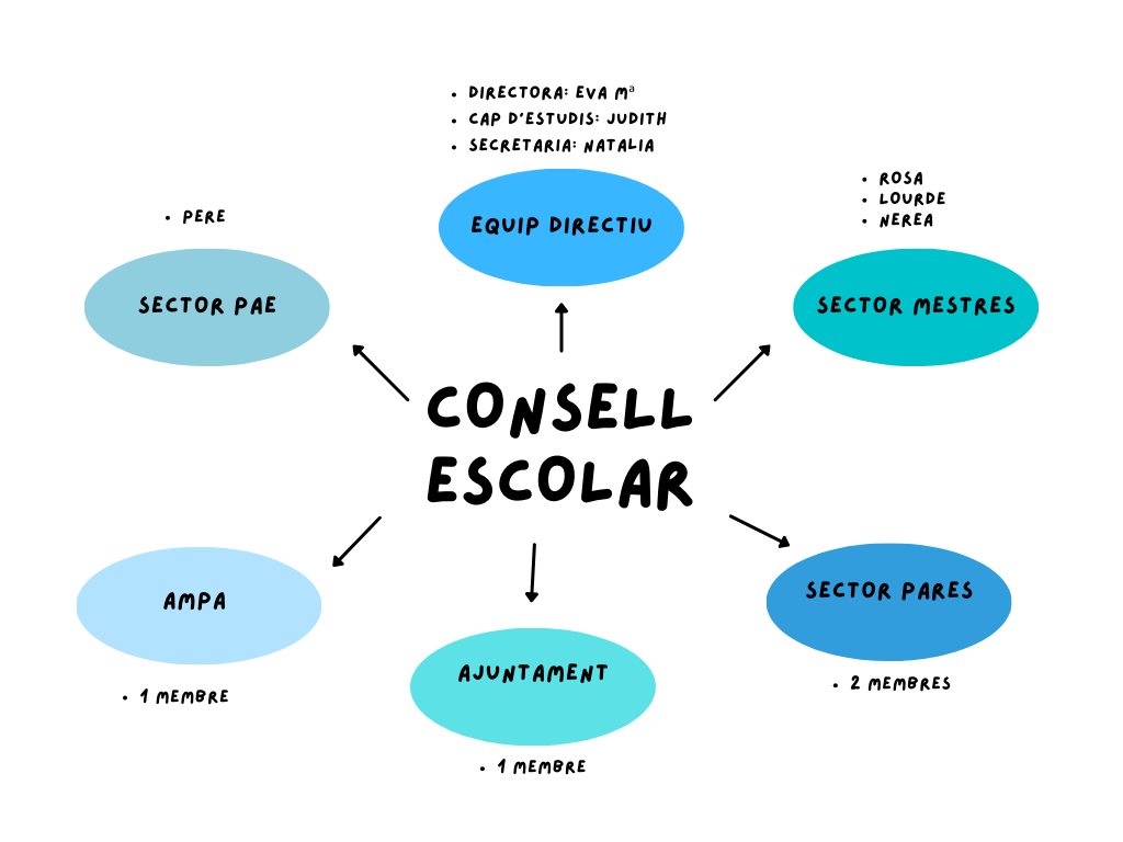 El consell escolar del centre és l’òrgan col·legiat de participació de la comunitat escolar en el govern del centre. La funció principal del consell escolar és participar en la presa de decisions en relació amb aquells temes importants per al funcionament i l’organització del centre: el projecte educatiu, la programació general, la gestió econòmica, etc.