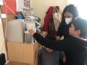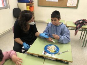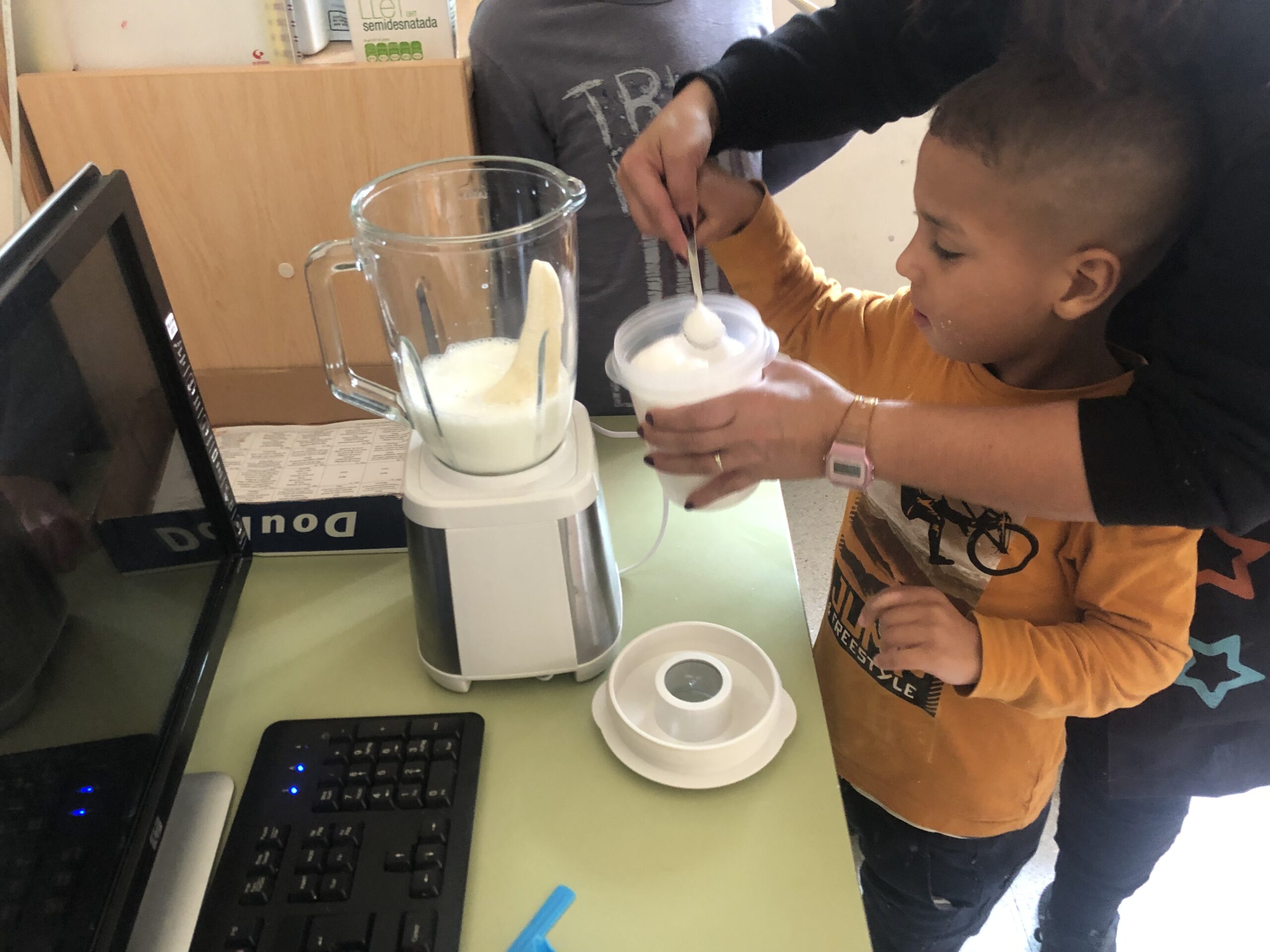 Tots els dimarts a la tarda a l’aula del Caramot fem taller de cuina. Experimentem amb els diferents aliments propis de l’estació de l’any, els toquem, olorem, tastem… elaborem petites receptes i descobrim aliments nous.
