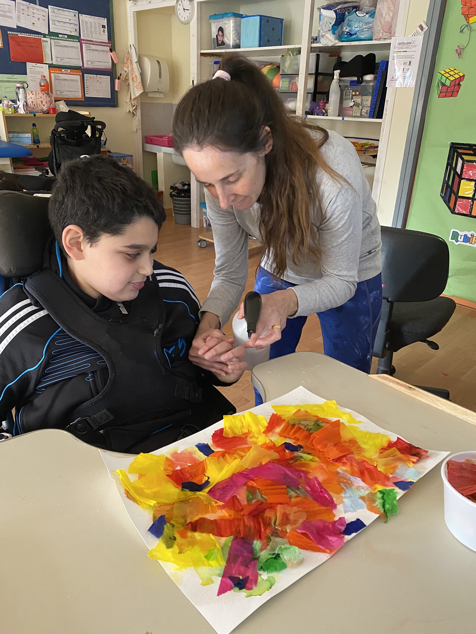 Estripar, trencar, pintar, estampar… I jugar amb els colors i les textures resulta molt divertit.