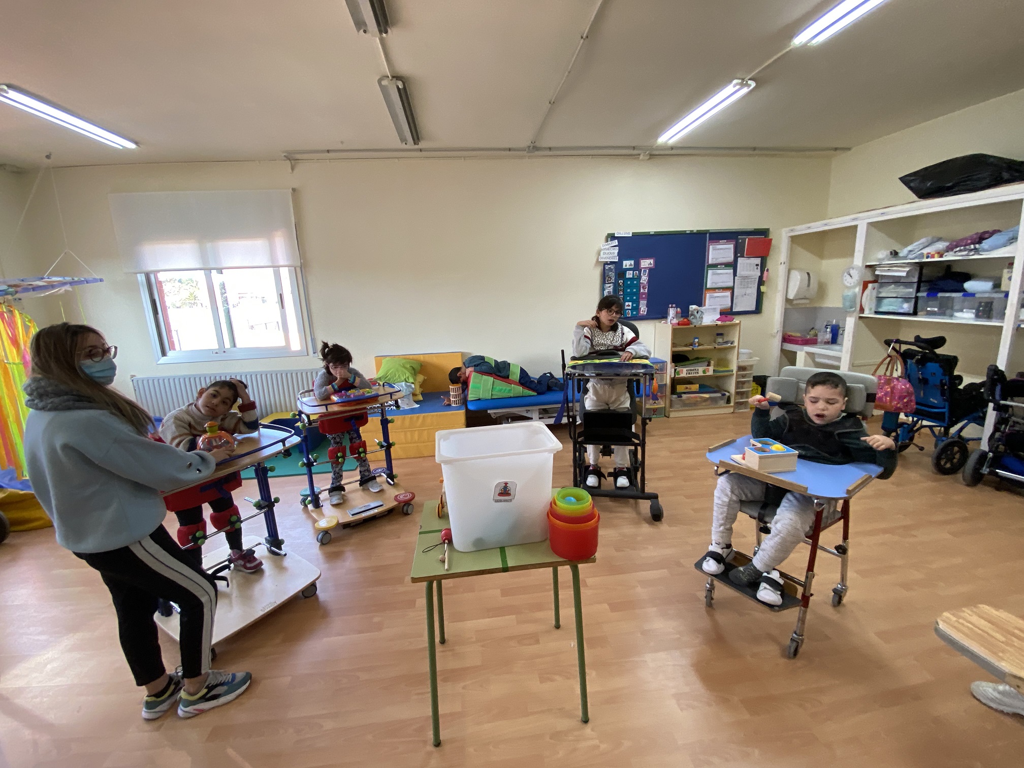 Als Castellers ens agrada molt l’estona de treball amb les caixes multisensorials. Tenim la caixa del so, la caixa de causa-efecte, la caixa de la vista, la caixa de la llum blanca i la caixa de la llum. A més tenim una capsa de pilotes molt divertides que roden i roden per tota la classe… Ens encanta atrapar-les i tirar-les perquè botin!