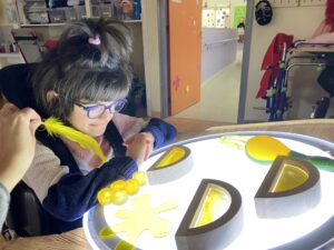 Estimulació multisensorial, experimentació, plàstica, taller de cuina… qualsevol sessió és bona per a treballar amb la taula de llum. Amb ella podem fixar més fàcilment l’atenció en tot allò que se’ns està ensenyant i ens podem recrear en petits detalls que d’una altra manera no veuríem en els objectes: el contrast figura-fons, les tonalitats, les textures, les transparències, etc.