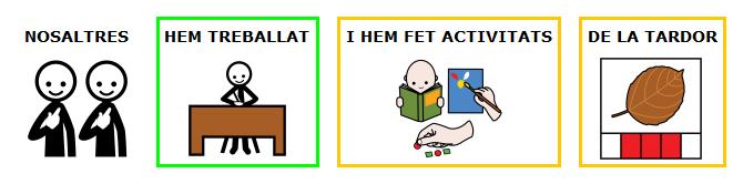 A l’aula també ve la Paula a fer-nos gaudir amb la música, amb la Montse ens endinsem en el món dels contes,amb la Lorena movem el cos fent psicomotricitat i finalment fem comunicació amb el Jordi, que és el nostre mestre d’Audició i Llenguatge.