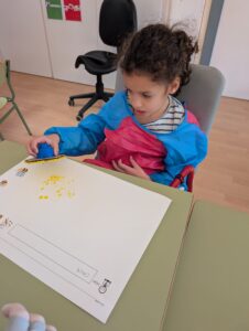 Hem fet propostes d’experimentació amb safates d’aigua i animals marins, observant, manipulant i descobrint a través del joc. També hem treballat amb materials manipulatius per reforçar les matemàtiques i hem confegit paraules, practicant la lectura i l’escriptura amb esforç i concentració.