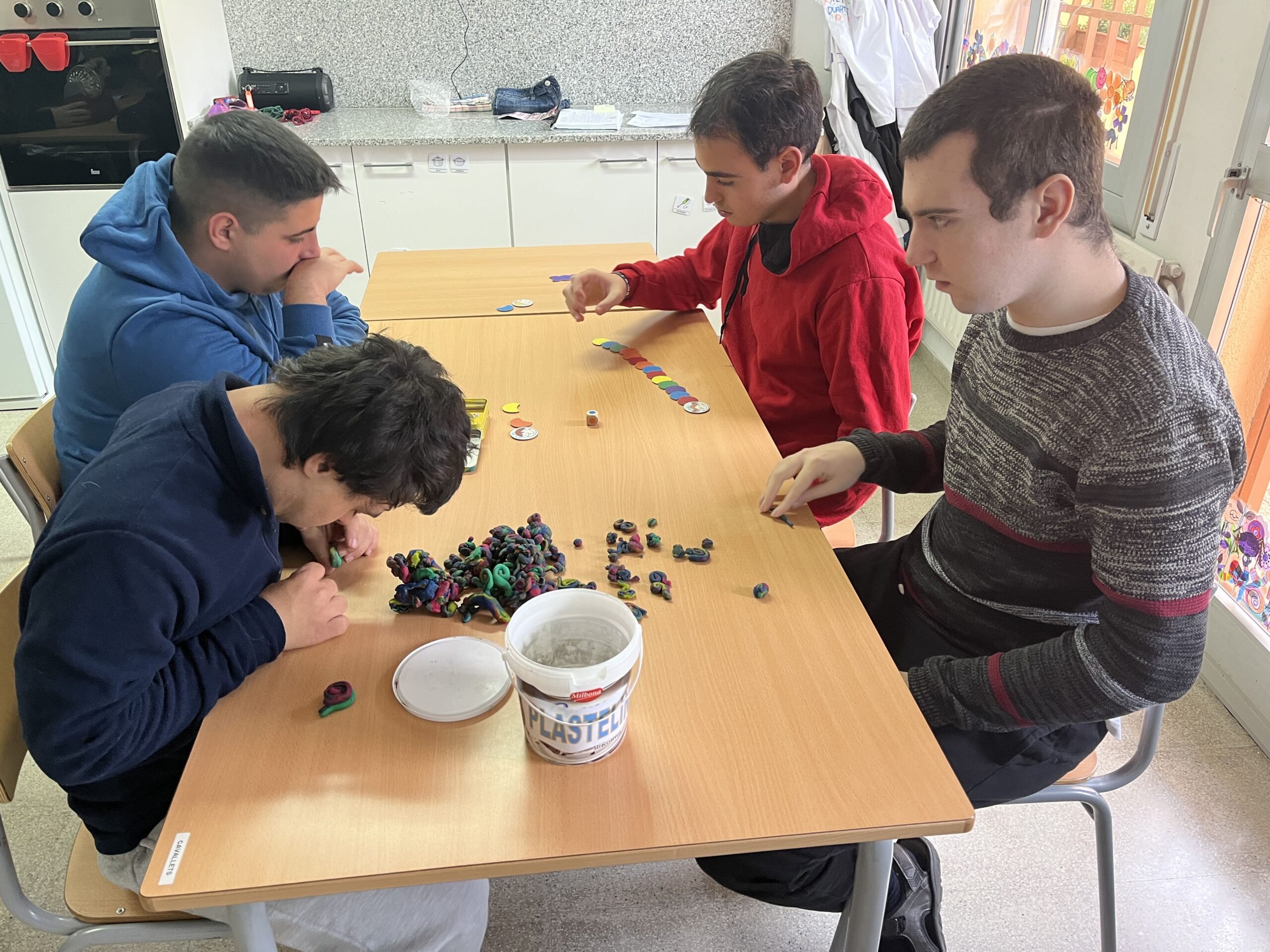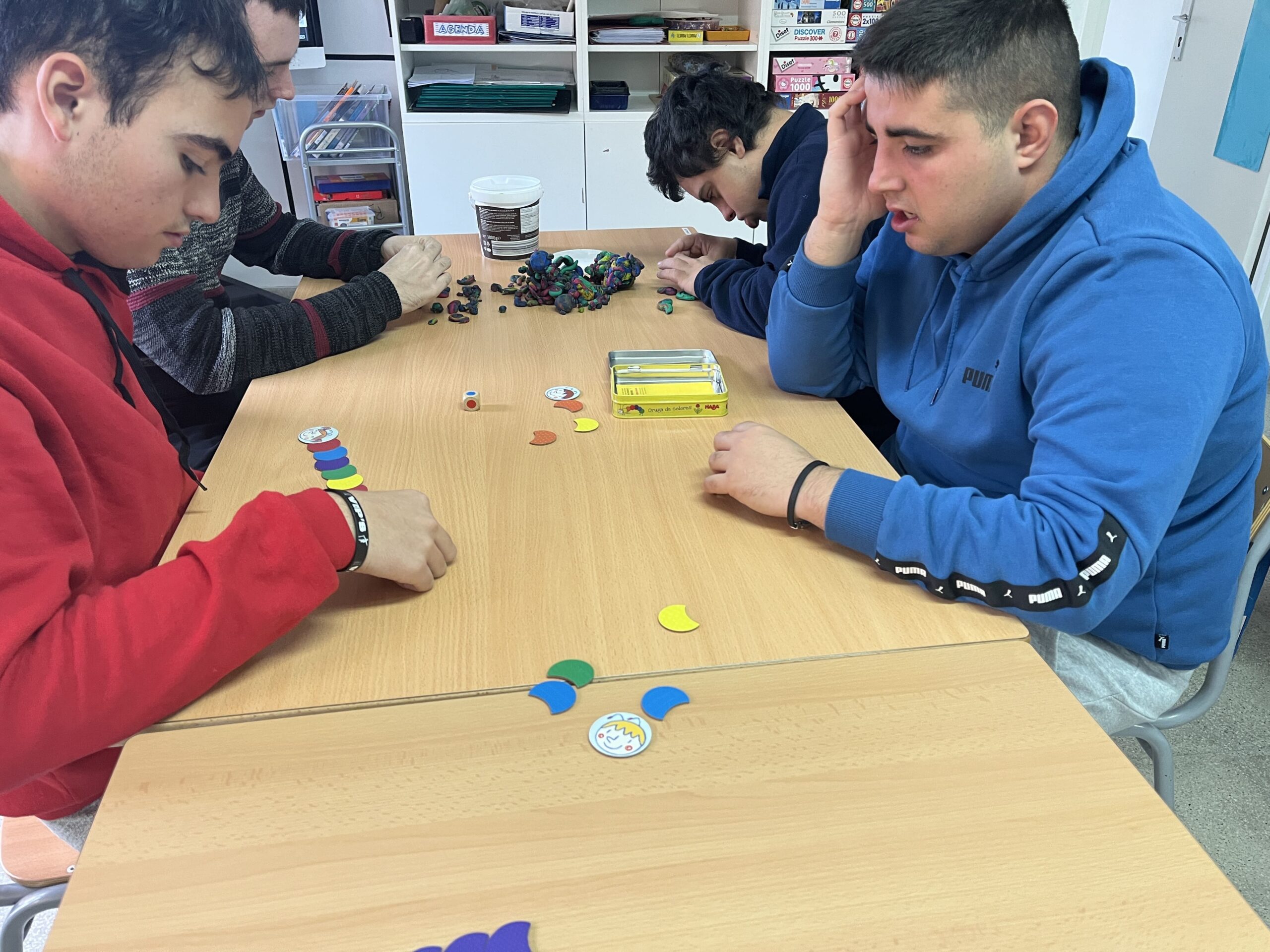 El grup dels Cavallets ens agrada molt jugar. Hi ha un dia a la setmana que fem jocs de taula. També podem jugar quan acabem les feines, quan acabem d’esmorzar, si un dia no sortim al pati perquè fa mal temps, etc. Tenim jocs nous que ens va cagar el tió i aprenem a jugar. Hi ha jocs que juguem un o dos i altres que podem jugar tots. Ens agrada molt fer puzles, jugar a l’Uno, al parxís, fer plastilina, a l’eruga, el bingo…