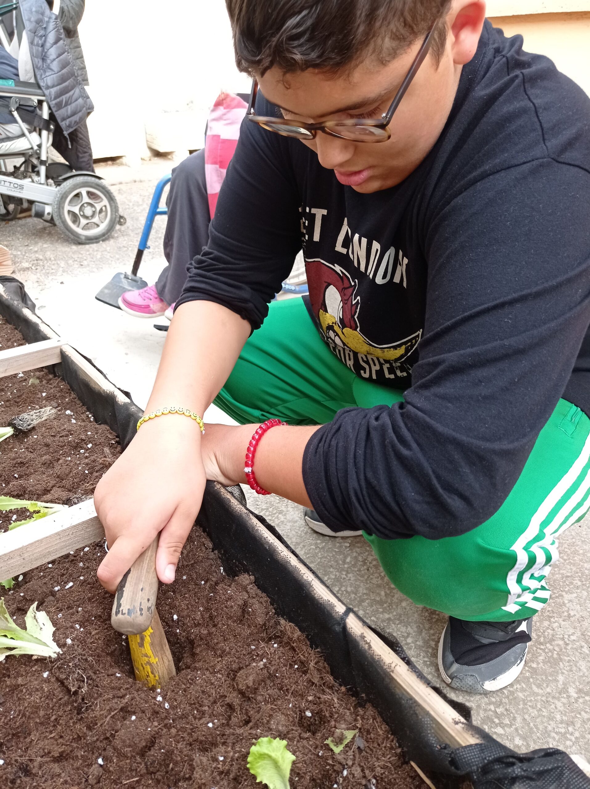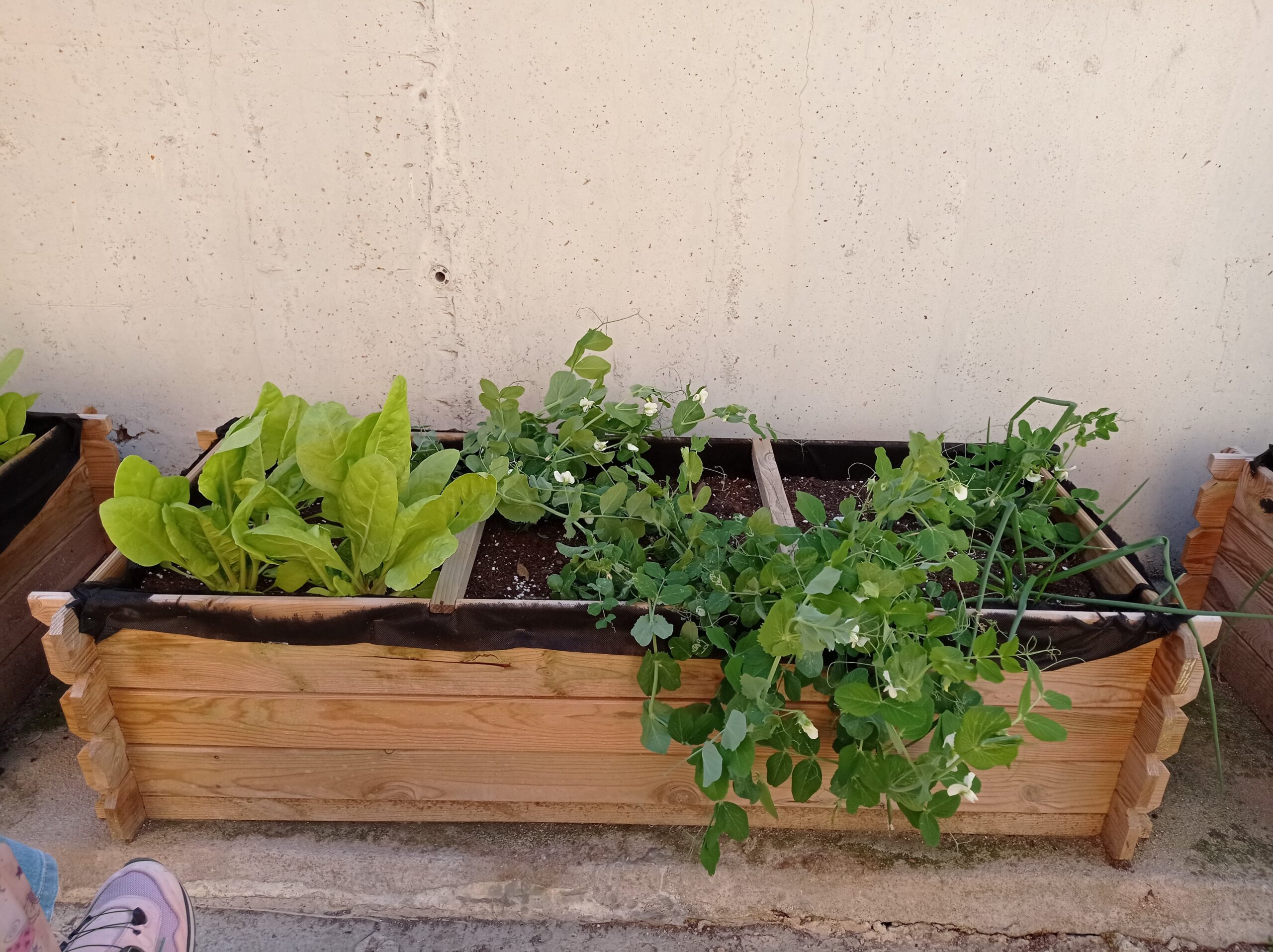 VAM PLANTAR ENCIAMS, ESCAROLES, BLEDES, PÈSOLS I CEBES. TAMBÉ MENTA, MELISSA I FLORS.