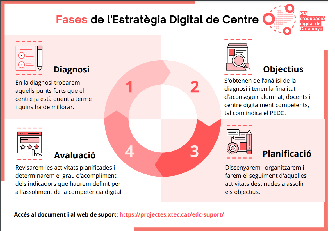 Per això, si s’utilitzen adequadament, les tecnologies digitals poden tenir un impacte favorable en l’aprenentatge dels alumnes, sempre que es defineixin objectius clars i definits. És important que els centres educatius defineixin clarament la seva estratègia digital per treure el màxim profit educatiu d’aquestes tecnologies. Encara que el Pla TAC ja complia aquesta funció, els canvis recents obliguen a fer un replantejament, tal com indica el Pla d’Educació Digital de Catalunya (PEDC), que insta als centres a concretar una Estratègia Digital de Centre (EDC).