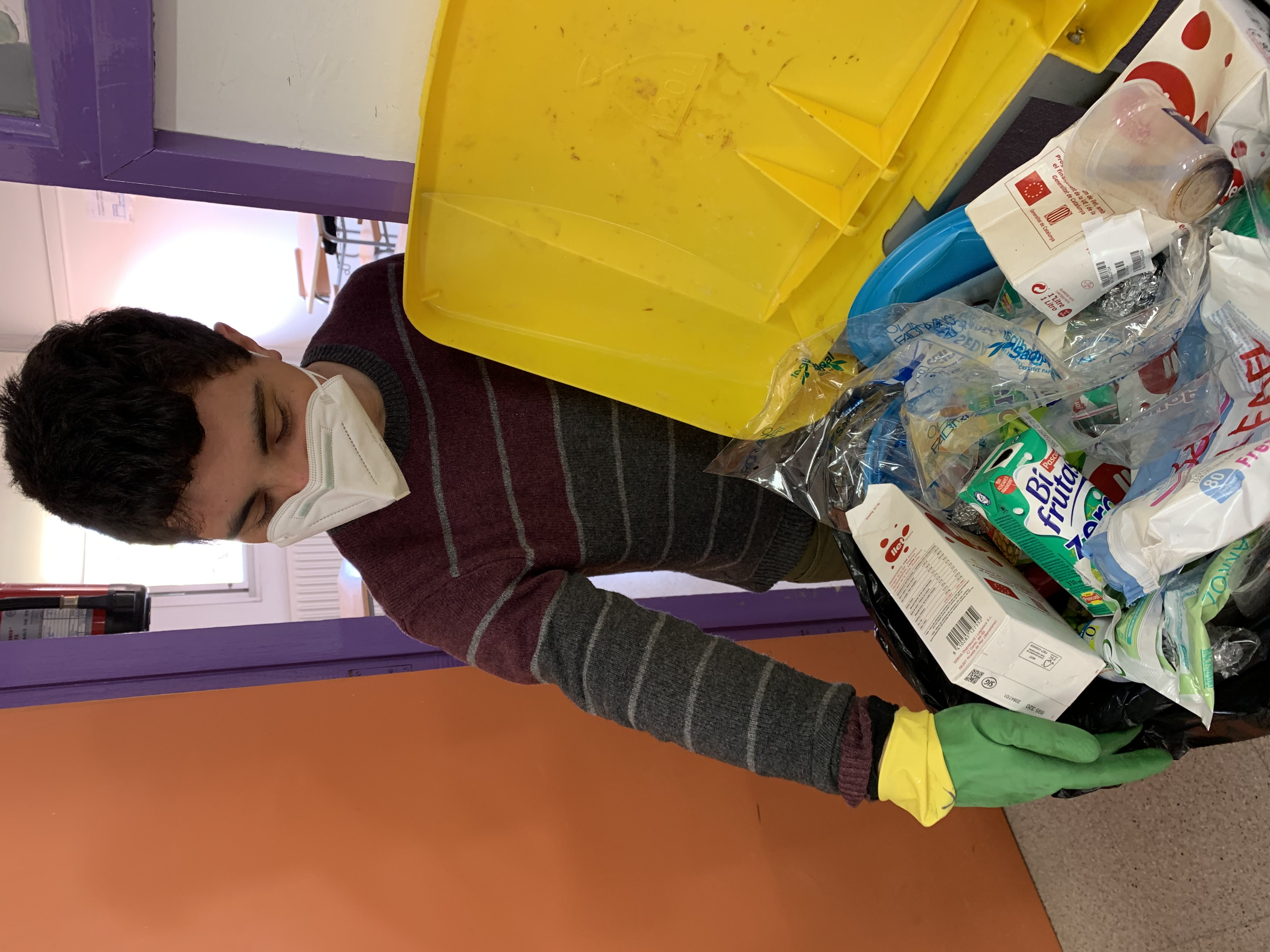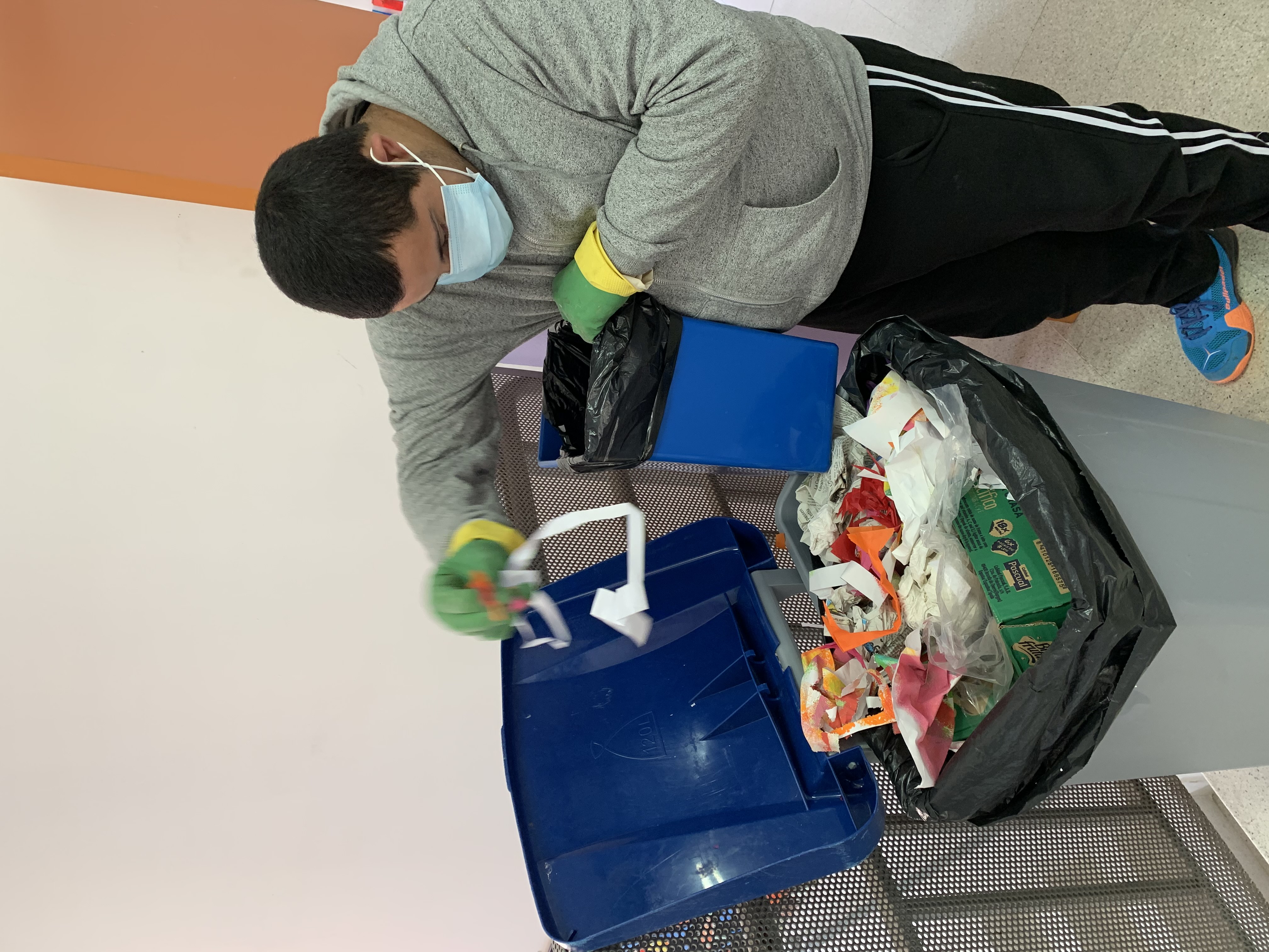 Els alumnes de TVA del grup de Panderos ens encarreguem de recollir i llençar les papereres de reciclatge de tota l’escola.
