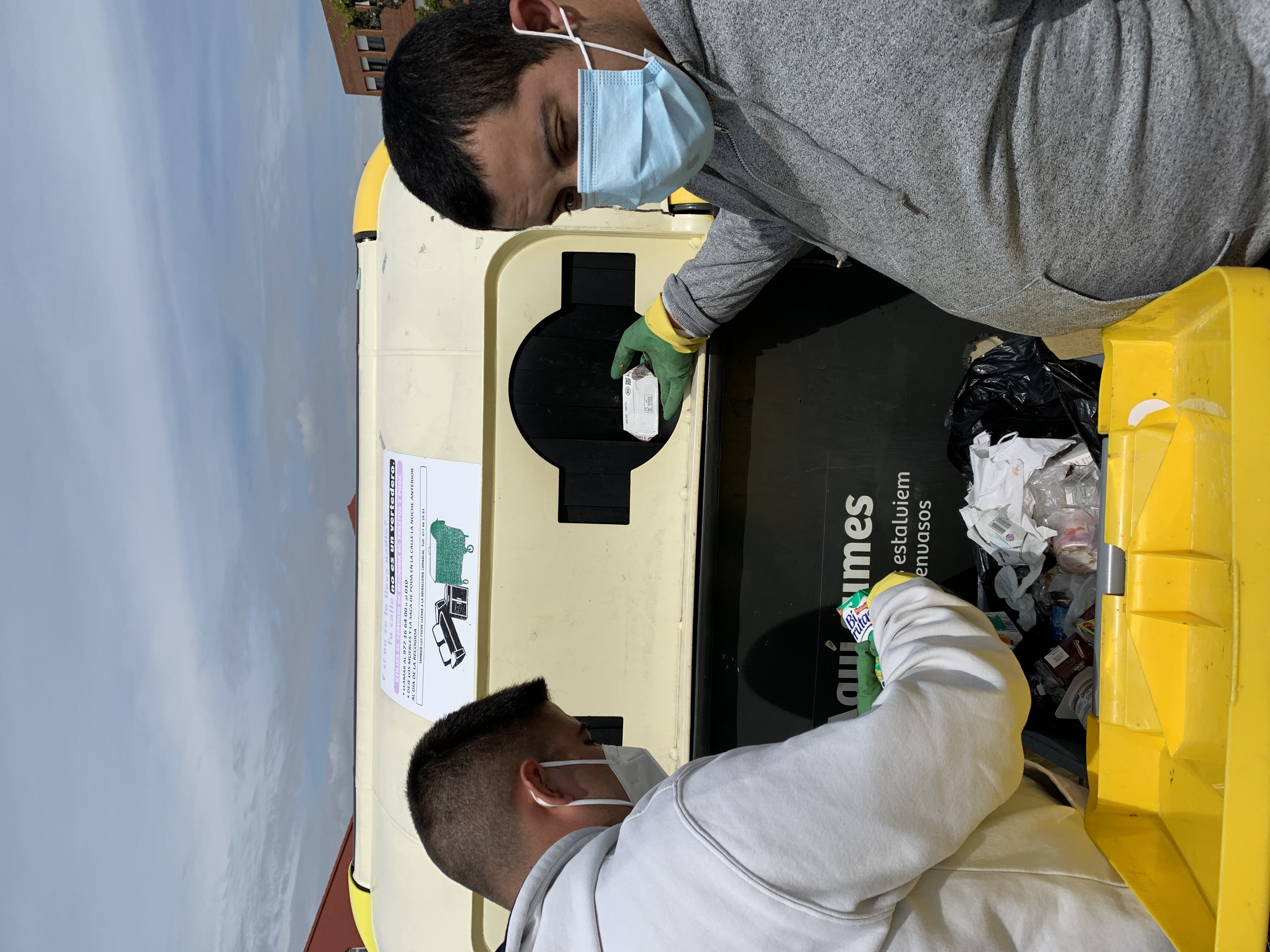 Primer de tot ens posem els guants per protegir-nos les mans. Revisem que tot estigui dins la paperera correcta i ho aboquem als contenidors. Quan ja els tenim plens sortim als contenidors de reciclatge del carrer.