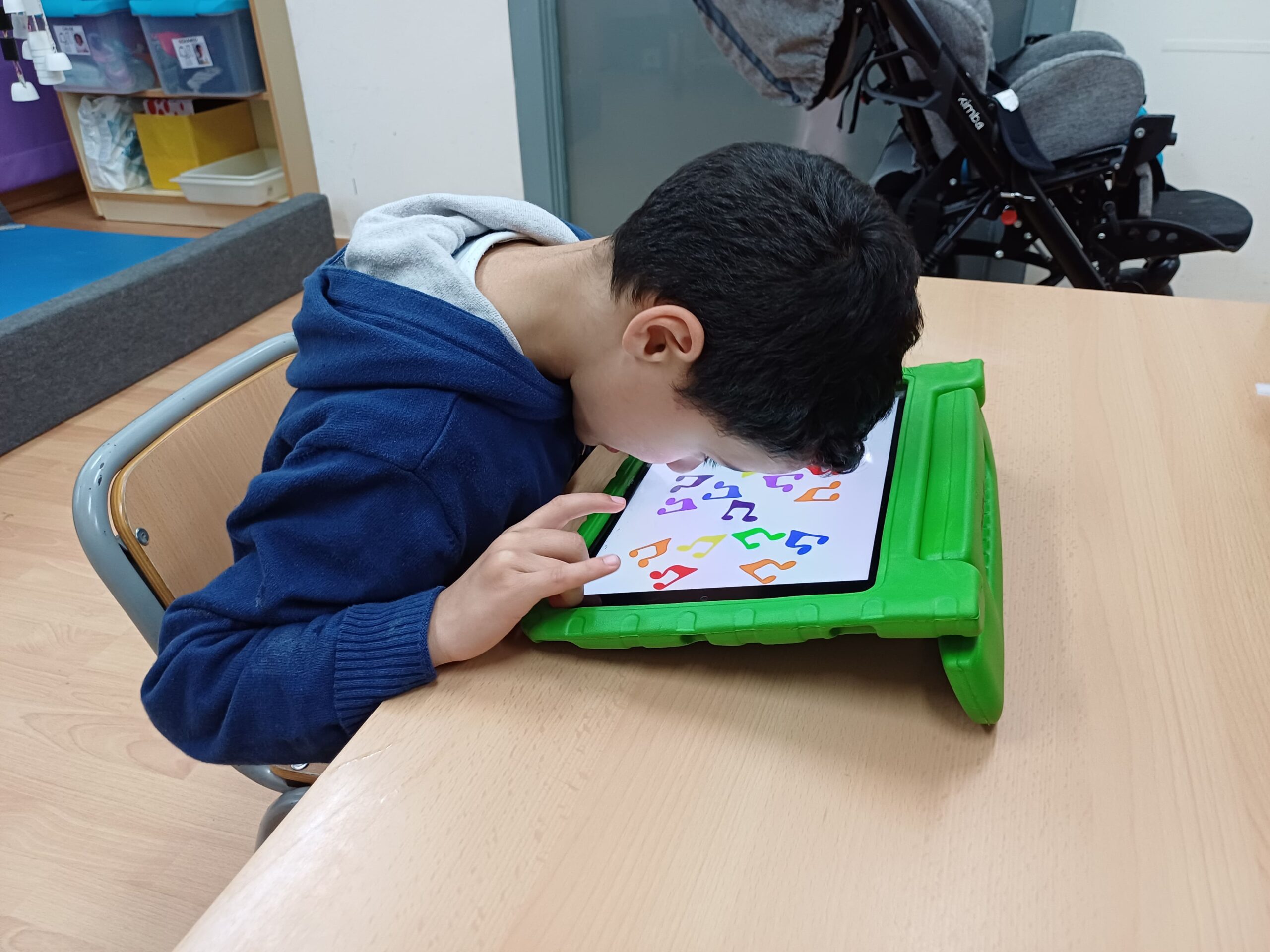 I al Mohamed li encanta jugar a jocs musicals i amb elements molt vistosos tant a la tauleta com amb la pantalla tàctil.