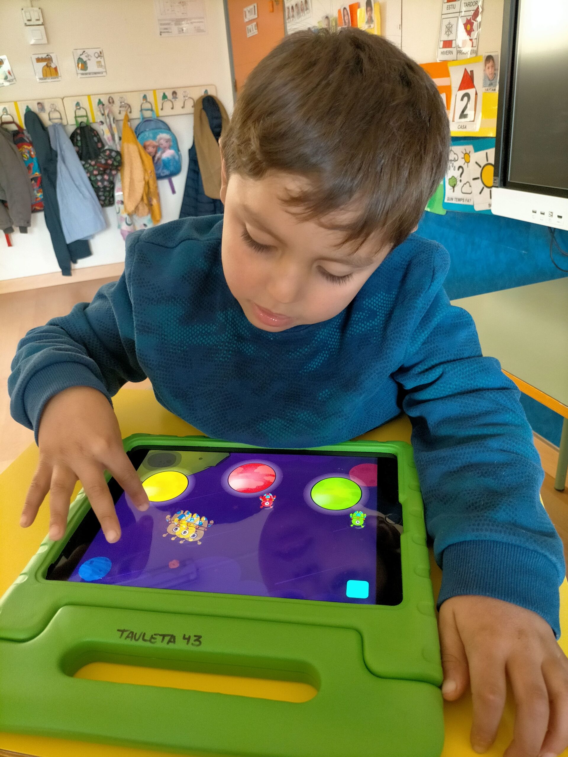 Els recursos digitals que utilitzem a la classe són molt atractius per nosaltres. És per això que al llarg de la setmana fem servir tant l’ordinador de la classe i com les tauletes de l’escola per a realitzar diverses tasques i així aprendre d’una forma lúdica i molt motivadora.