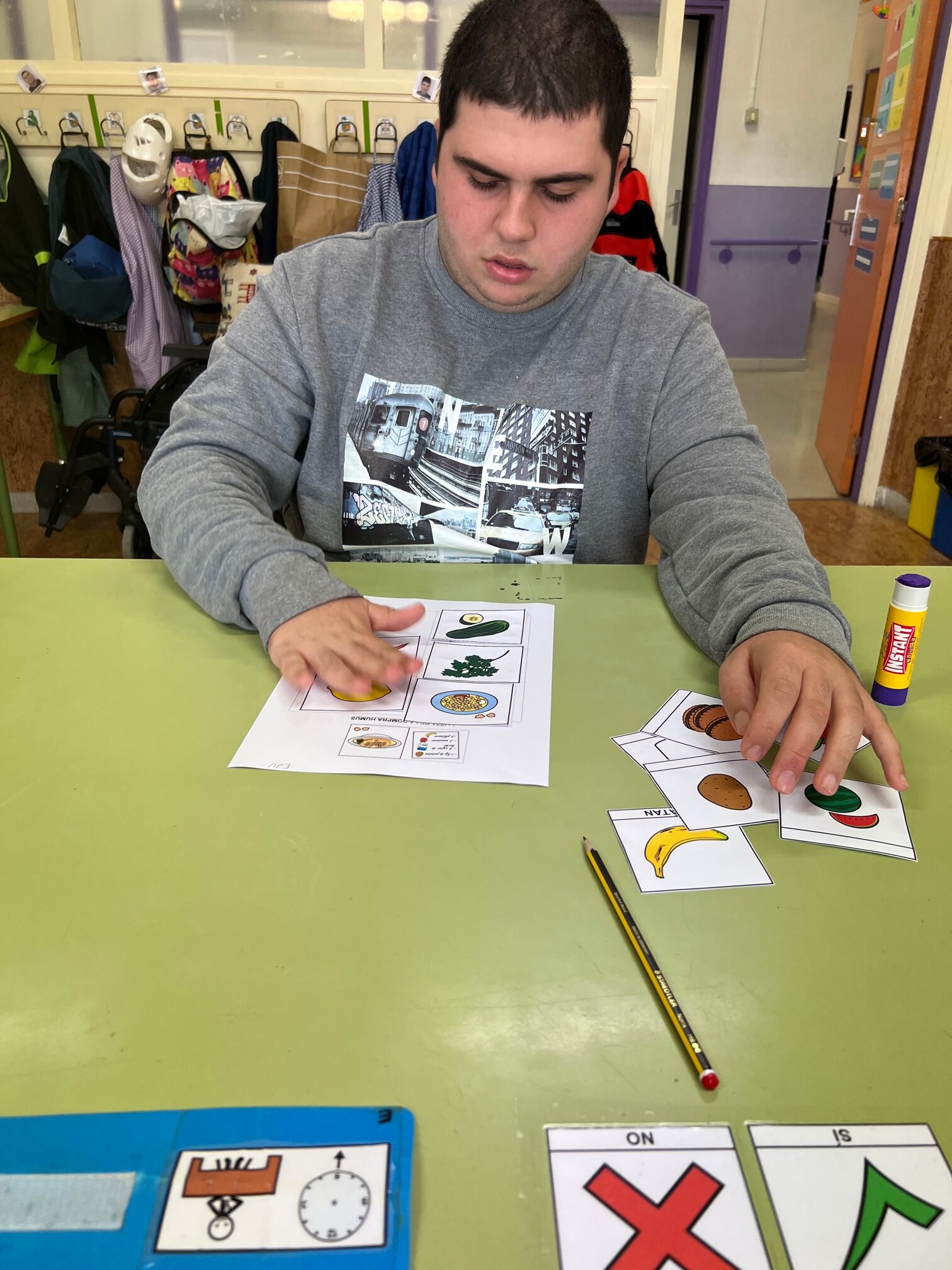 Els dilluns presentem una recepta i preparem la llista de la compra amb pictogrames, els dimarts, aprofitant el nostre matí de passeig anem a comprar els ingredients i els dimecres fem de cuiners i seguint la recepta preparem les elaboracions.