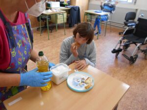 Amb aquesta activitat aprenem a desenvolupar-nos a les tasques de la vida diària i tastem coses noves, tot provant tècniques diferents.