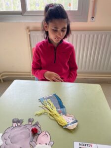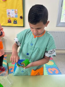 Hem fet propostes d’experimentació amb safates d’aigua i animals marins, observant, manipulant i descobrint a través del joc. També hem treballat amb materials manipulatius per reforçar les matemàtiques i hem confegit paraules, practicant la lectura i l’escriptura amb esforç i concentració.