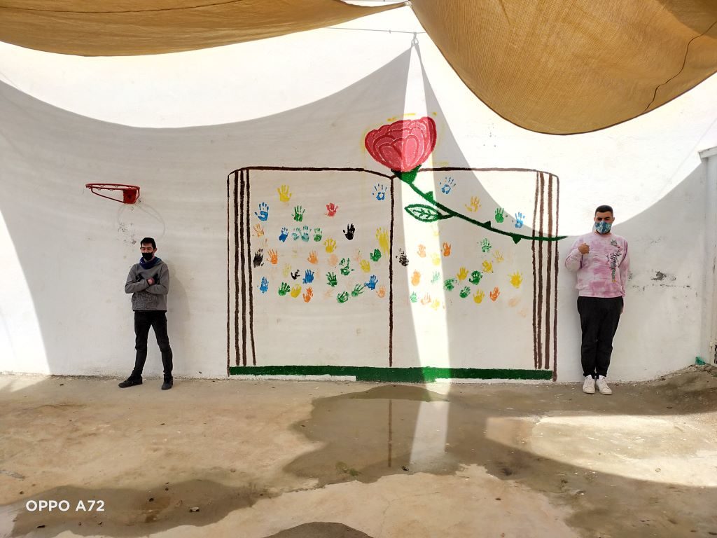 PINTAR EL FRONTÓN I DIBUIXAR-LI UN LLIBRE I UNA ROSA.