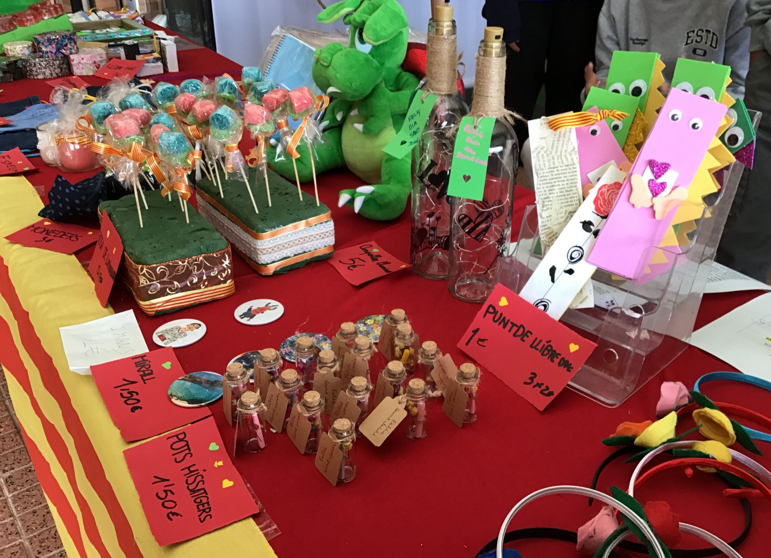 ALTRES ALUMNES DE POSTOBLIGATÒRIA VAN FER PARADA AL VESTÍBUL DE L’ESCOLA ON VENIEN DIFERENTS MANIPULATS DE SANT JORDI.