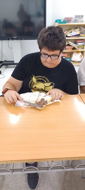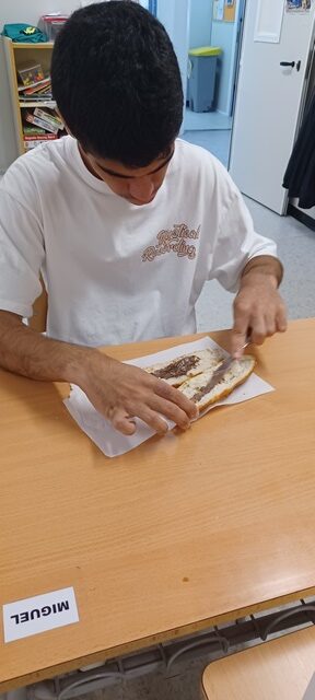 A L’ESCOLA ENS TALLEM EL PA I EL FARCIM. AVUI HEM ESCOLLIT FER L’ENTREPÀ DE CREMA DE XOCOLATA I HAN QUEDAT UNS ENTREPANS BONÍSSIMS!!!