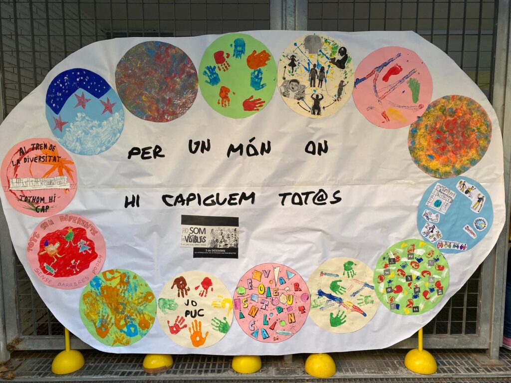 03/12/21Des de l’escola volem reivindicar aquest dia, com un dia per la visibilitat. És per això que hem volgut treure un mural al carrer amb el missatge “Per un món on hi capiguem tot@s”.