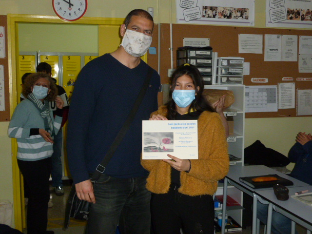 El Diego dels serveis educatius va venir a fer entrega a l’escola de la ploma d’or i de la ploma de plata, als guanyadors, el K. d’Oficina i la M. de Comerç.
