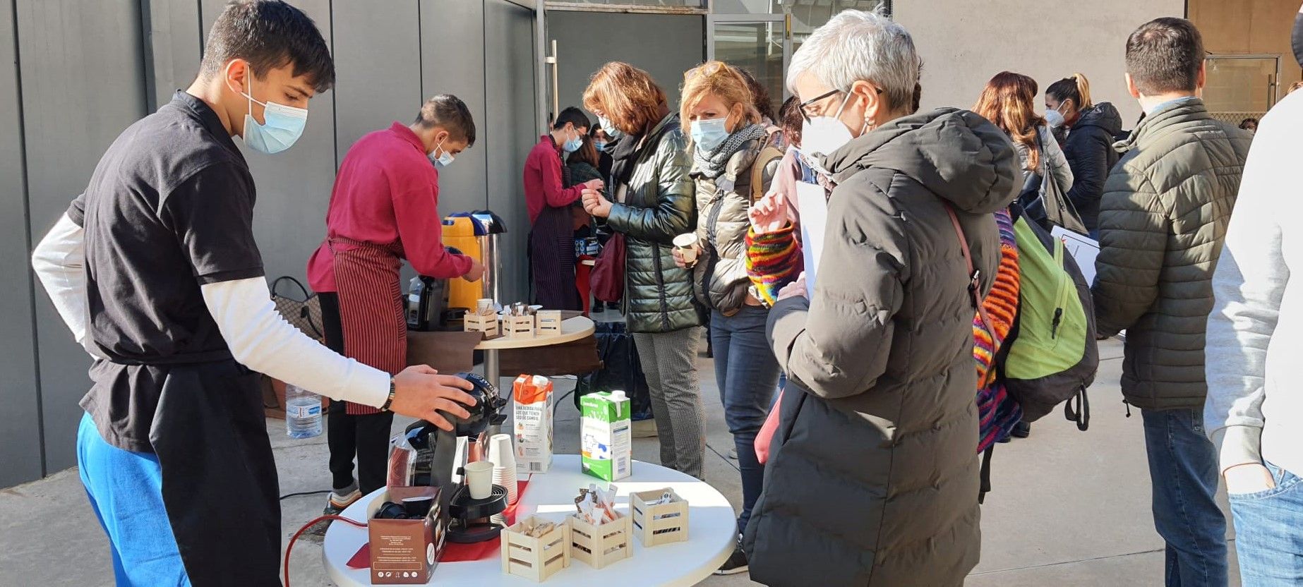 Els alumnes del perfil d’hoteleria van preparar els entrepans i els cafès a l’escola i en el moment del servei un grup de 5 nois i noies van anar a l’espai Betúlia per fer el servei de l’esmorzar.