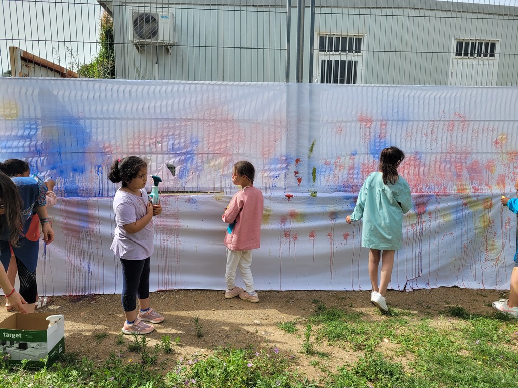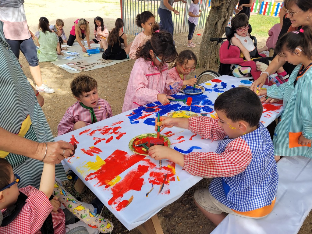 Aquest curs amb els alumnes d’infantil, s’ha treballat la plàstica mitjançant deferents propostes relacionades amb l’obra de l’artista Hervé Tullet. Per finalitzar el curs es van fer diferents propostes a l’aire lliure relacionades amb l’artista. Les propostes consistien en oferir diferents materials i elements per tal que els alumnes s’expressessin lliurement, aquestes van ser fer un mural conjunt, làmines per pintar amb ceres, pintures, aquarel·les… i altres activitats per modelar amb plastilina.