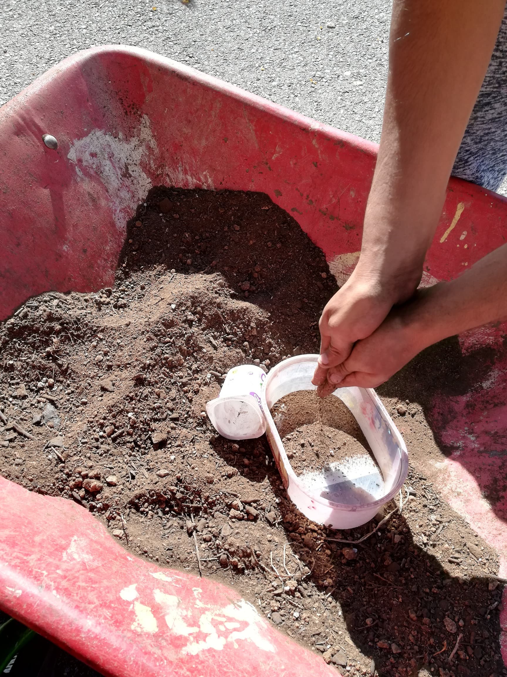 Abans de res, vam fer una barreja de terra abonada amb terra del nostre hort.