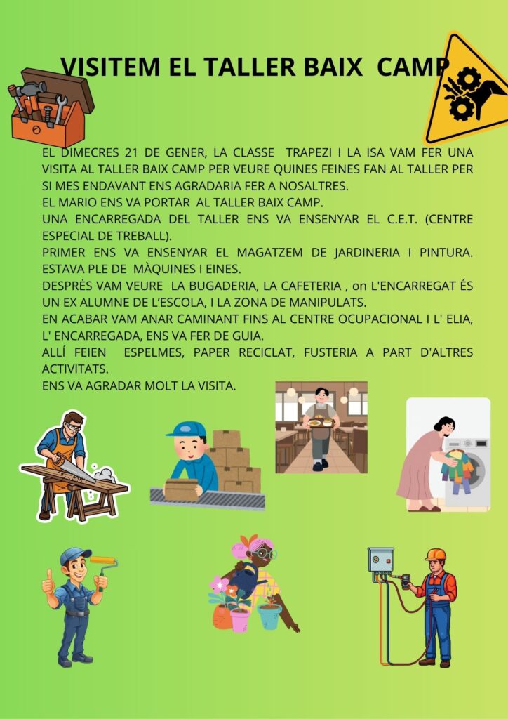 Els Trapezi visiten el Taller Baix Camp Feu un comentari / Per Ntra Sra del Mar / 23 de març de 2026 / Joves Portada TRAPEZI / Joves, PFIE, Sortides, Taller