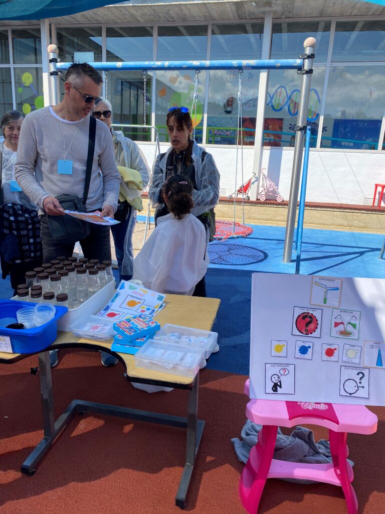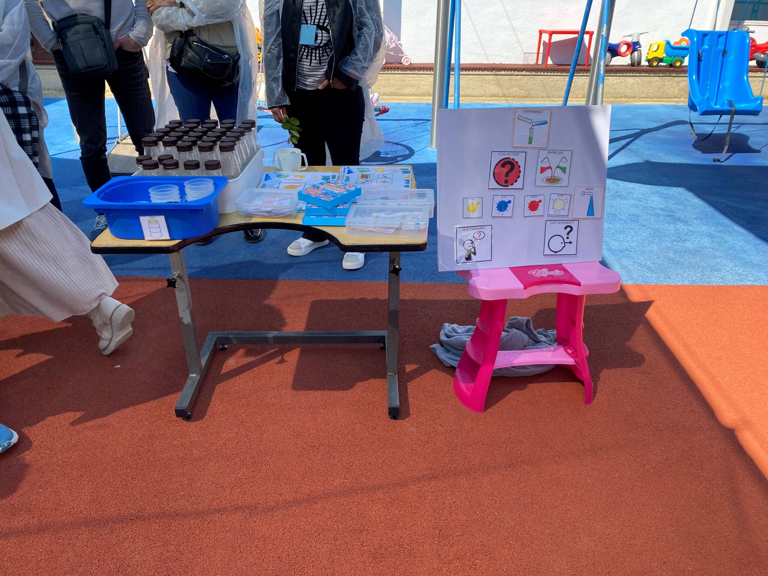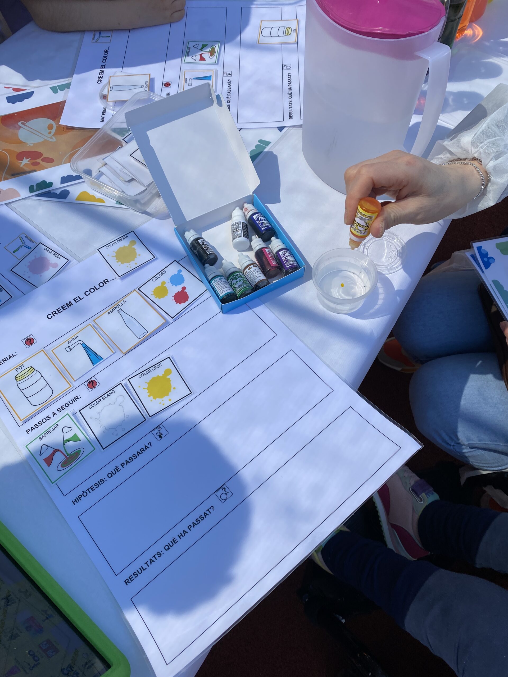 Després les comunitats de mitjans i petits van preparar uns experiments al pati, explicant el projecte de la ciència que hem treballat aquest curs.