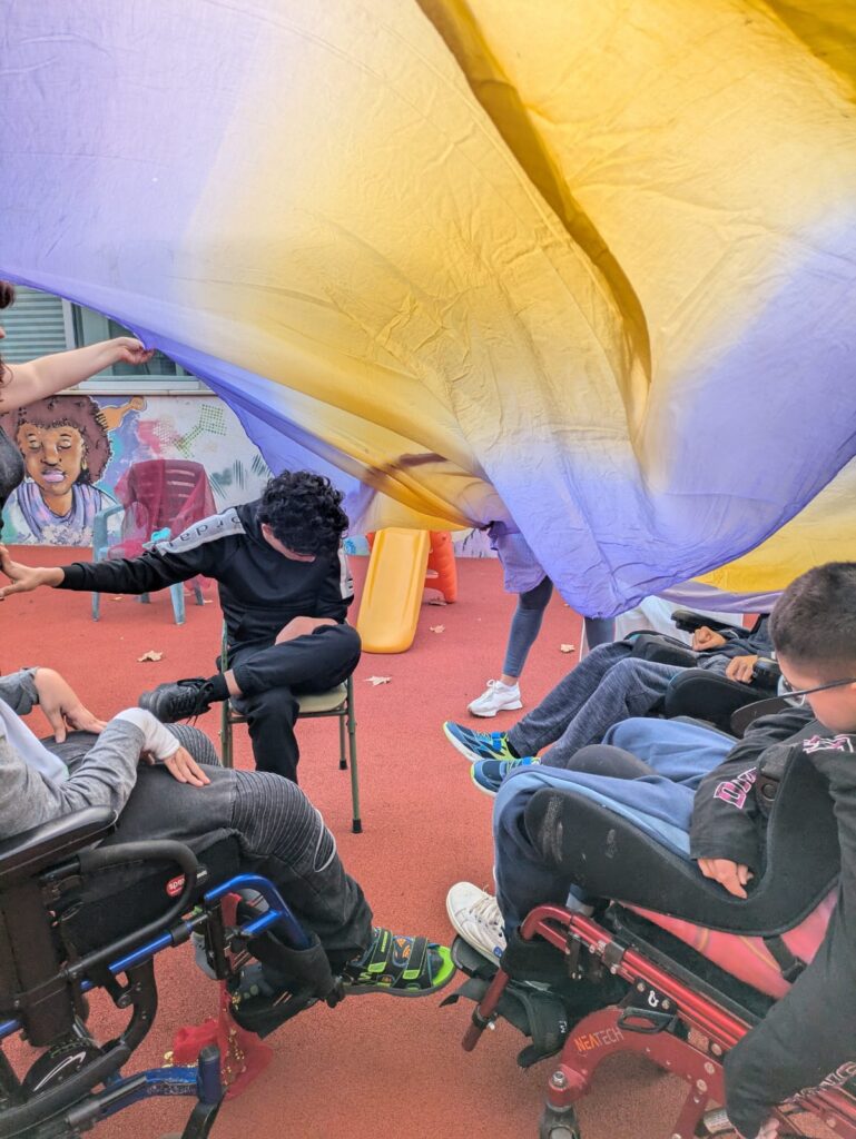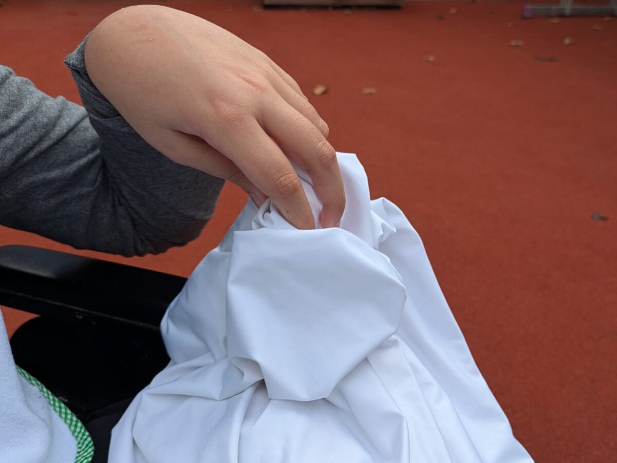 Per viure cada un dels colors de la ciència, hem sortit al pati a veure com cada un d’ells ens feia omplir de vida. Una tela, una textura, un color i un so.