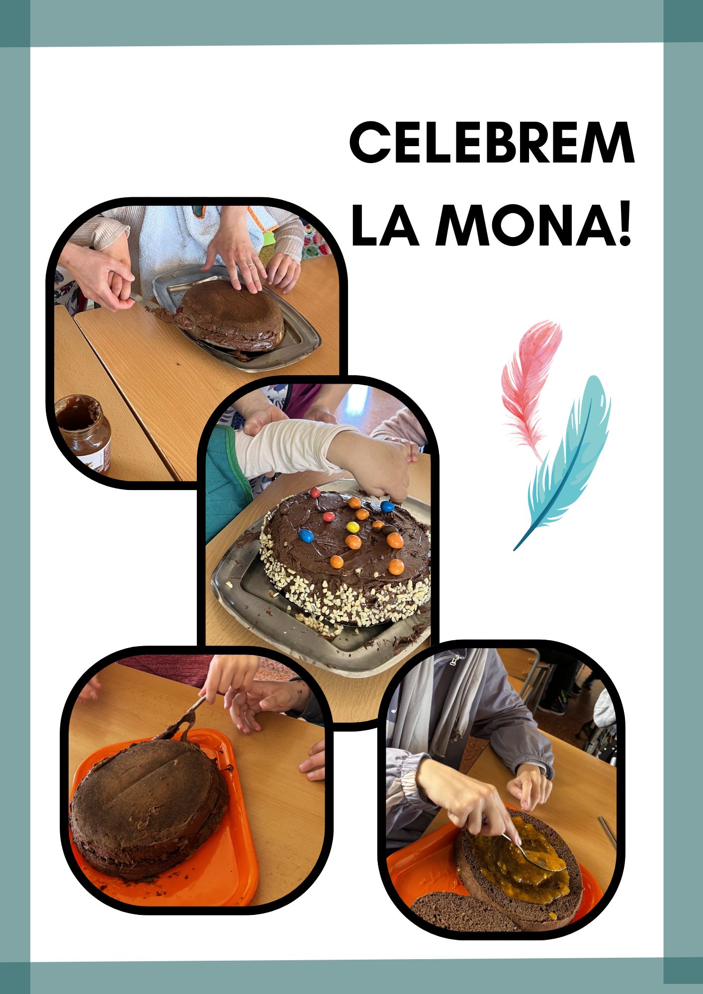 Divendres 27 de març vam celebrar el dia de la Mona tots junts. Va ser un dia de disbauxa absoluta. Al matí vam fer les Mones i vam sortir a buscar els ous de xocolata i a la tarda vam posar música a la placeta i ens vam menjar la Mona. Estava boníssima!