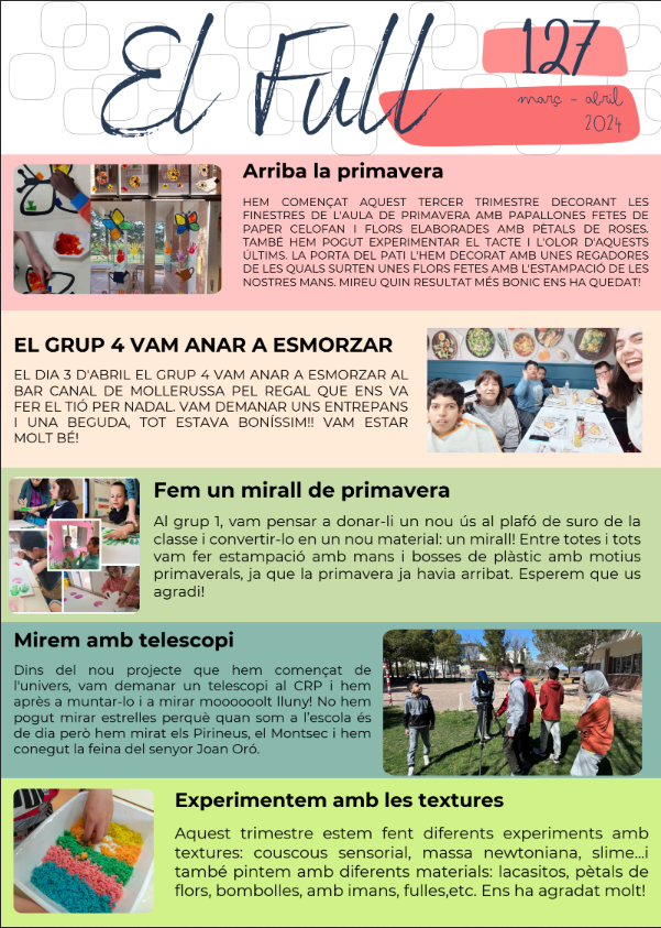 El Full 127 – març – abril Feu un comentari / Per Sònia / 27 de juny de 2024 / El Full General Grup 1 Grup 2 Grup 3 Grup 4 Grup 5 Portada Descarrega “El Full 127 de gener – Febrer”