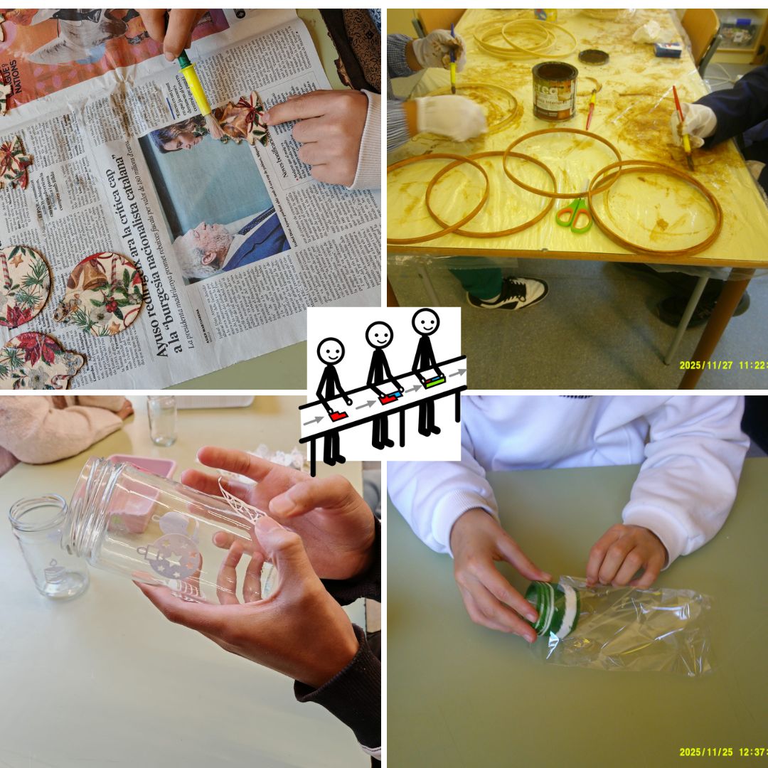 El passat trimestre, els nois i noies de l’ESO han estat treballant de valent per crear productes nadalencs fets amb molta creativitat, paciència i molta il·lusióHem vist artistes, manetes, experts en embolicar i fer les llaçades, especialistes en dibuixar cares, artesans donant forma a estrelles, arbres i boles de Nadal.