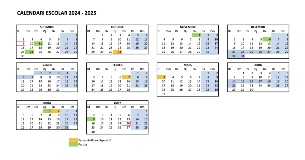 INFORMACIÓ CALENDARI ESCOLAR CURS 2024-2025
