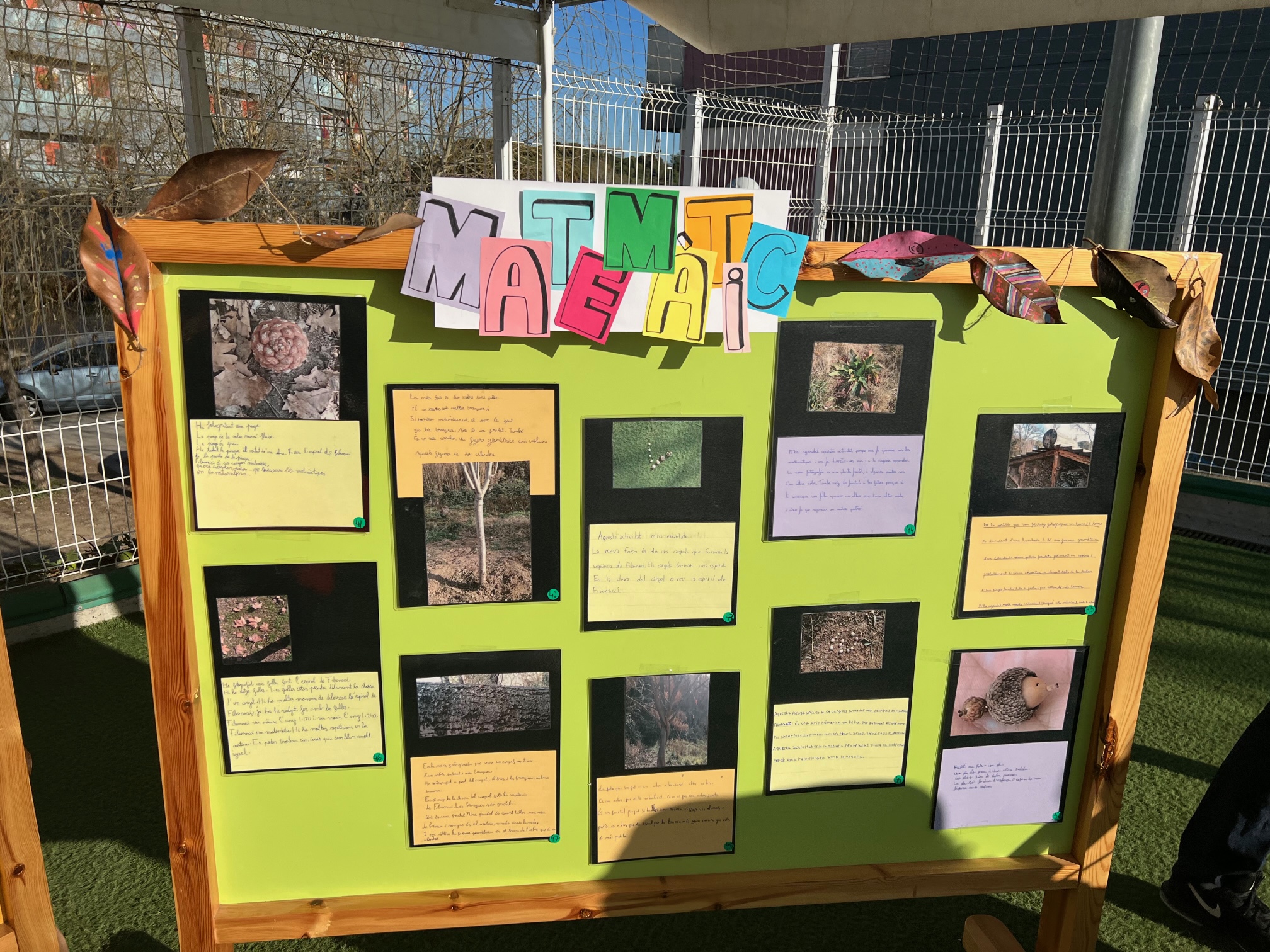 Aquest segon trimestre, l’alumnat de 4t de l’escola han tancat el centre d’interès “Geometria i natura” amb una exposició amb les fotografies que van fer al Torrent dels Alous. Aquestes fotografies havien que complir almenys un requisit: mostrar una figura geomètrica plana o amb volum, la seqüència de Fibonacci o geometria fractal. Així, s’han posat les ulleres de matemàtics i matemàtiques i han vist la natura des d’una nova perspectiva i aplicant els coneixements adquirits al llarg del centre d’interès. Felicitats per la feina ben feta!
