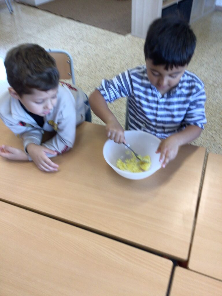 Per celebrar la castanyada, avui a l’escola hem fet panellets seguint una recepta prèviment treballada. El resultat ha estat excel·lent, i els hem pogut gaudir a la tarda tots i totes plegats.