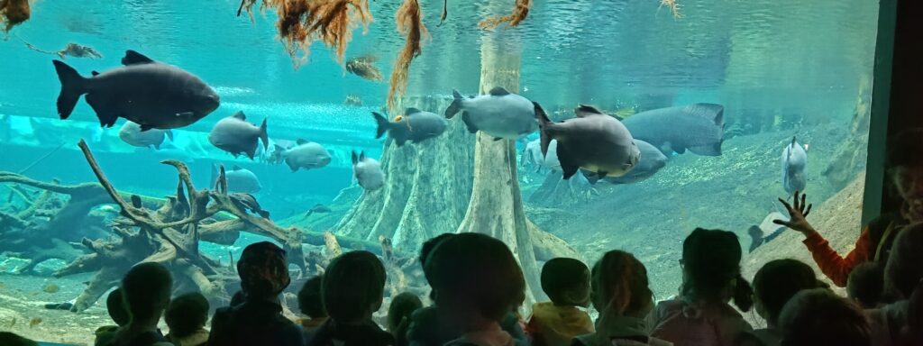 L’altre de les visites va estar al Cosmocaixa. Caminant, vam arribar al museu on ens van fer una visita guiada al bonic espai del Bosc Inundat i ens van explicar i sentir curiositats de l’hàbitat i el clima del bosc de l’Amazones. Després vam fer de científics i científiques, investigant al taller Click, un espai interactiu per aprendre ciència jugant i experimentant. L’espai permet manipular, tocar, construir, provar amb aigua, llums, colors, mecànica i construcció, per comprovar què funciona i que no. Descobrir ciència de forma divertida i pràctica.