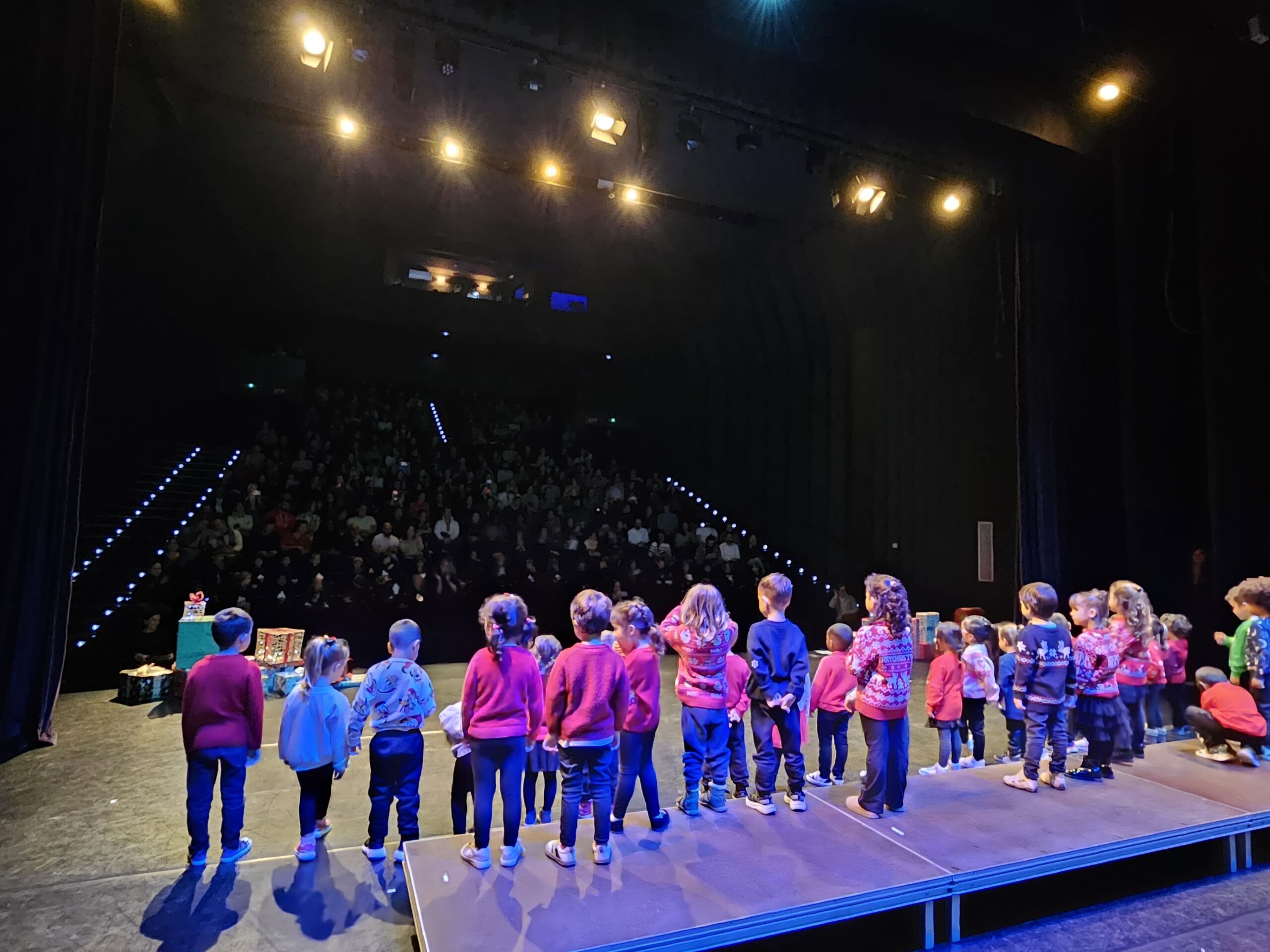 Aquest dimecres 17 de desembre s’ha celebrat el concert de nadal de l’escola Antoni Gaudi al teatre Plaza de Castelldefels. Després de varies setmanes d’assajos l’alumnat de l’escola han actuat en diferents torns durant el dia. Els primers en actuar han estat els nens i nens d’I3 amb les cançons “a la nit de nadal” i “amb la llum del fanalet”. Els nens i nenes també han cantat i ballat cançons en anglès d’allò més divertides com “snowflake” i “Jingle Bell Rock”. Després un grup de mares i pares ens han sorprès ballant d’allò més bé i ha aparegut el famós Grinch! Ha estat un dia ple d’emocions i el públic ha valorat l’esforç amb un fort aplaudiment.