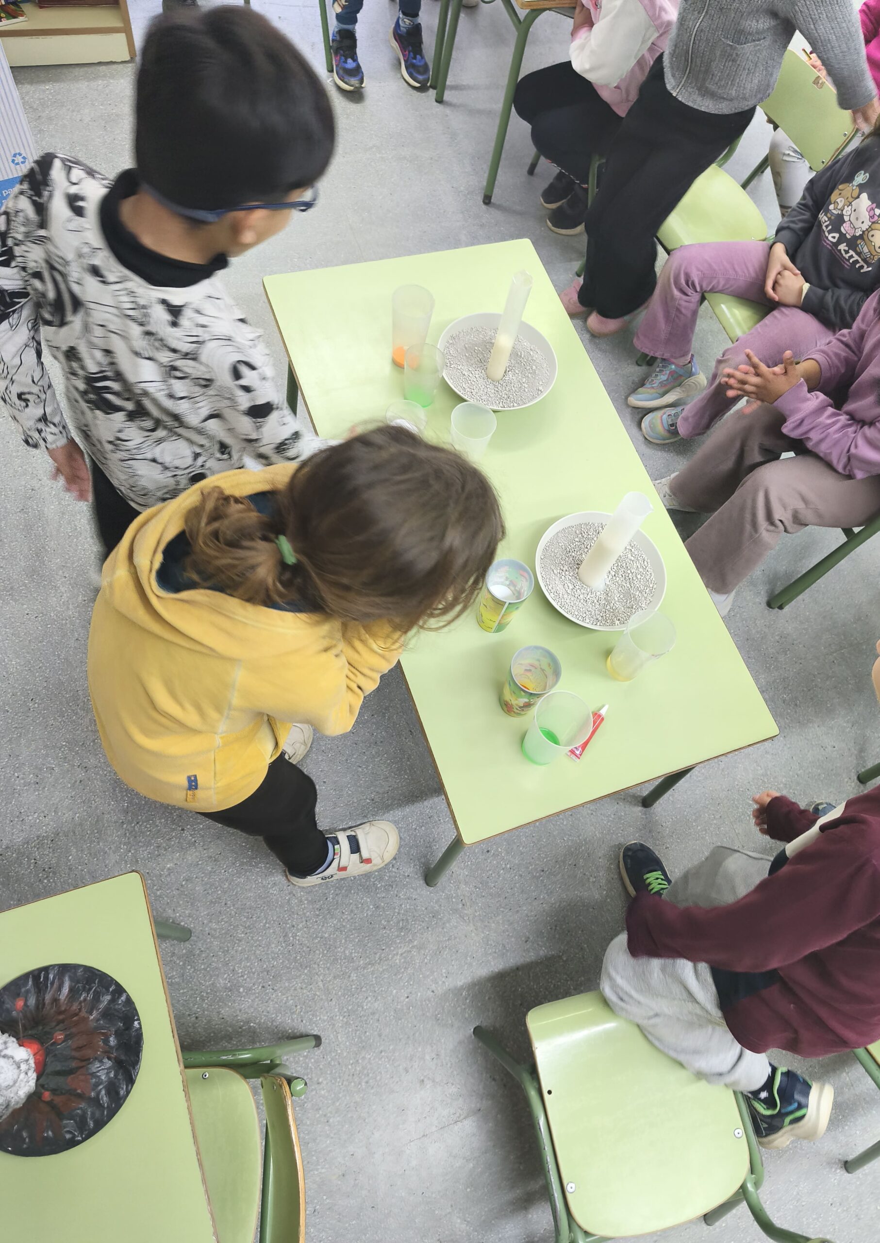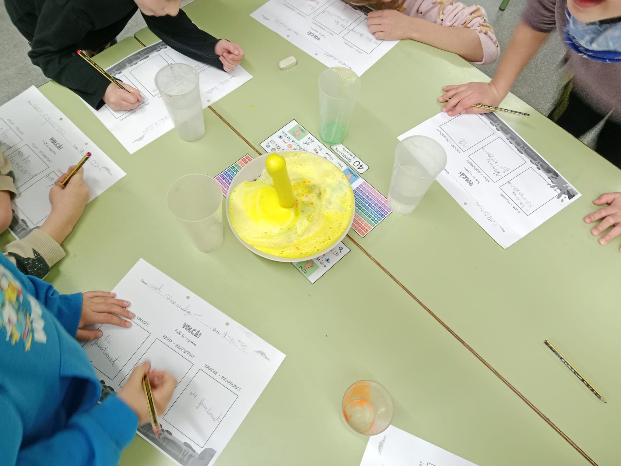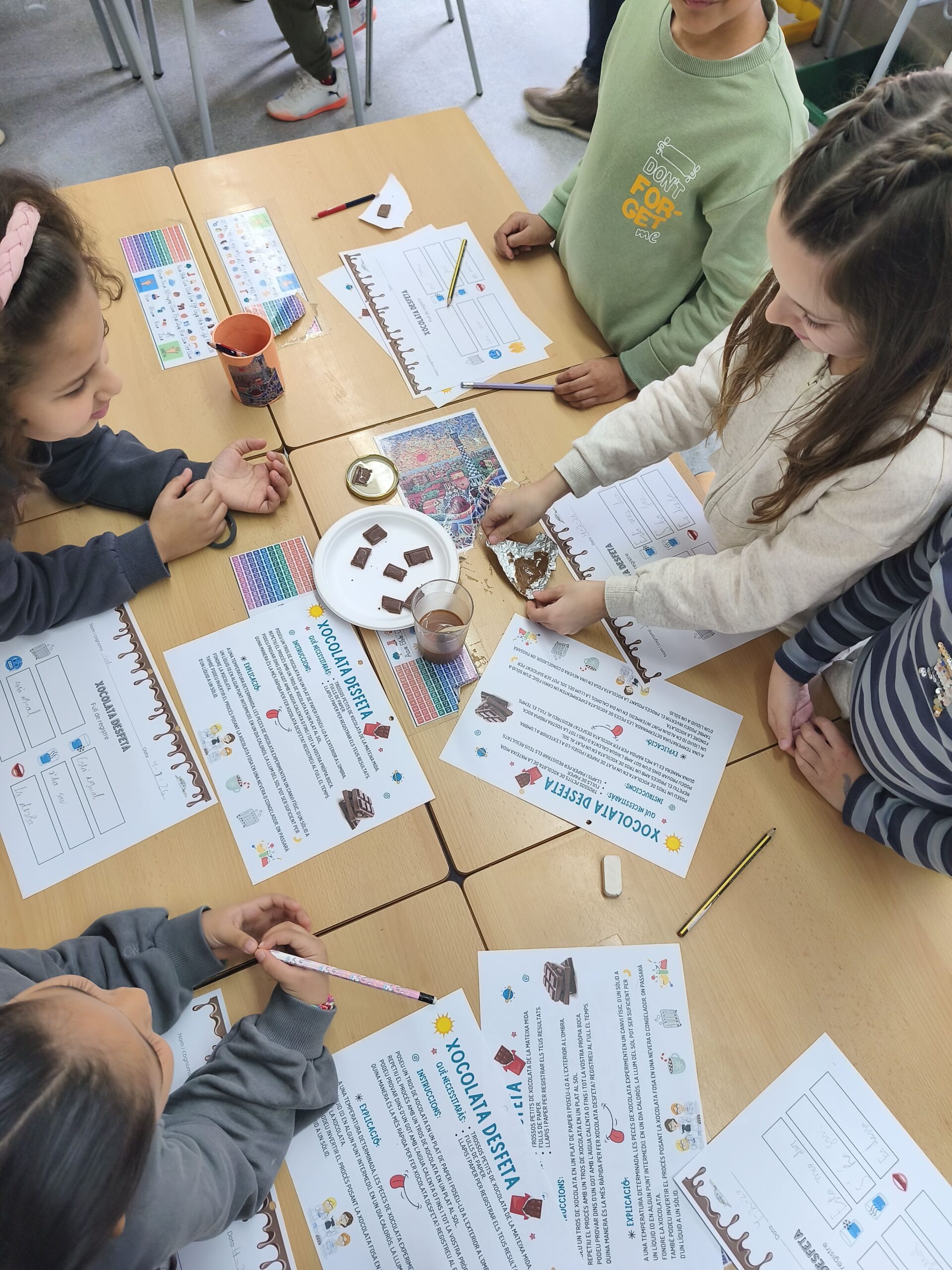 Al matí, hem conegut diverses dones científiques i la seva importància en el món de la recerca. L’alumnat de 1r ha realitzat un experiment molt emocionant: la recreació d’un volcà en erupció utilitzant bicarbonat i vinagre. D’altra banda, els nens i nenes de 2n han experimentat els canvis de la matèria amb xocolata, sotmetent-la a diferents temperatures.