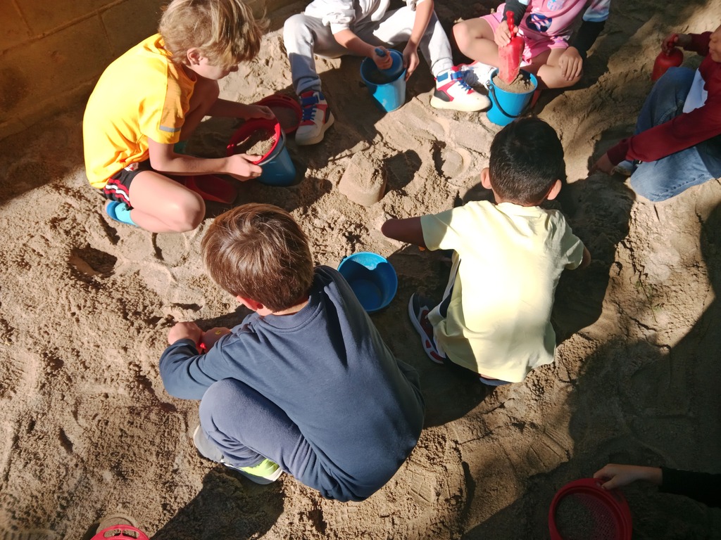 El nou sorral s’ha convertit ràpidament en un dels racons preferits del pati. Amb galledes, pales i molta imaginació, els nens i nenes han començat a construir castells, carreteres, pastissos i tot allò que la seva fantasia els permet. Més enllà de divertir-se, el joc a la sorra afavoreix la cooperació, la motricitat fina i el treball compartit —i això és justament el que hem vist des del primer moment!