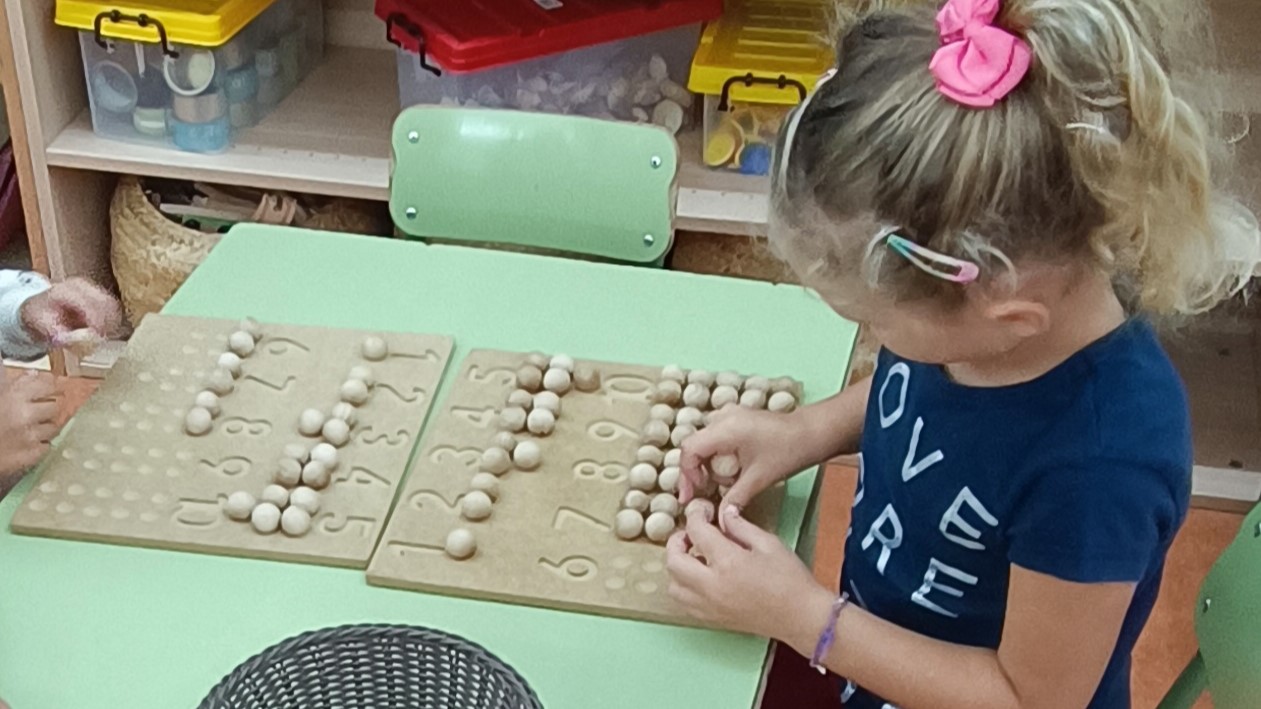 A educació Infantil, treballem el llenguatge matemàtic a través de racons. Treballem sobretot manipulativament, d’aquesta manera els infants aprenen a partir de la seva experiència i els seus aprenentatges són més significatius. Es dona importància al joc dins de la vida quotidiana dels infants, ja que aprendre jugant facilita l’adquisició de coneixements i contribueix al benestar emocional dels infants, creant un aprenentatge positiu, vivencial i enriquidor.