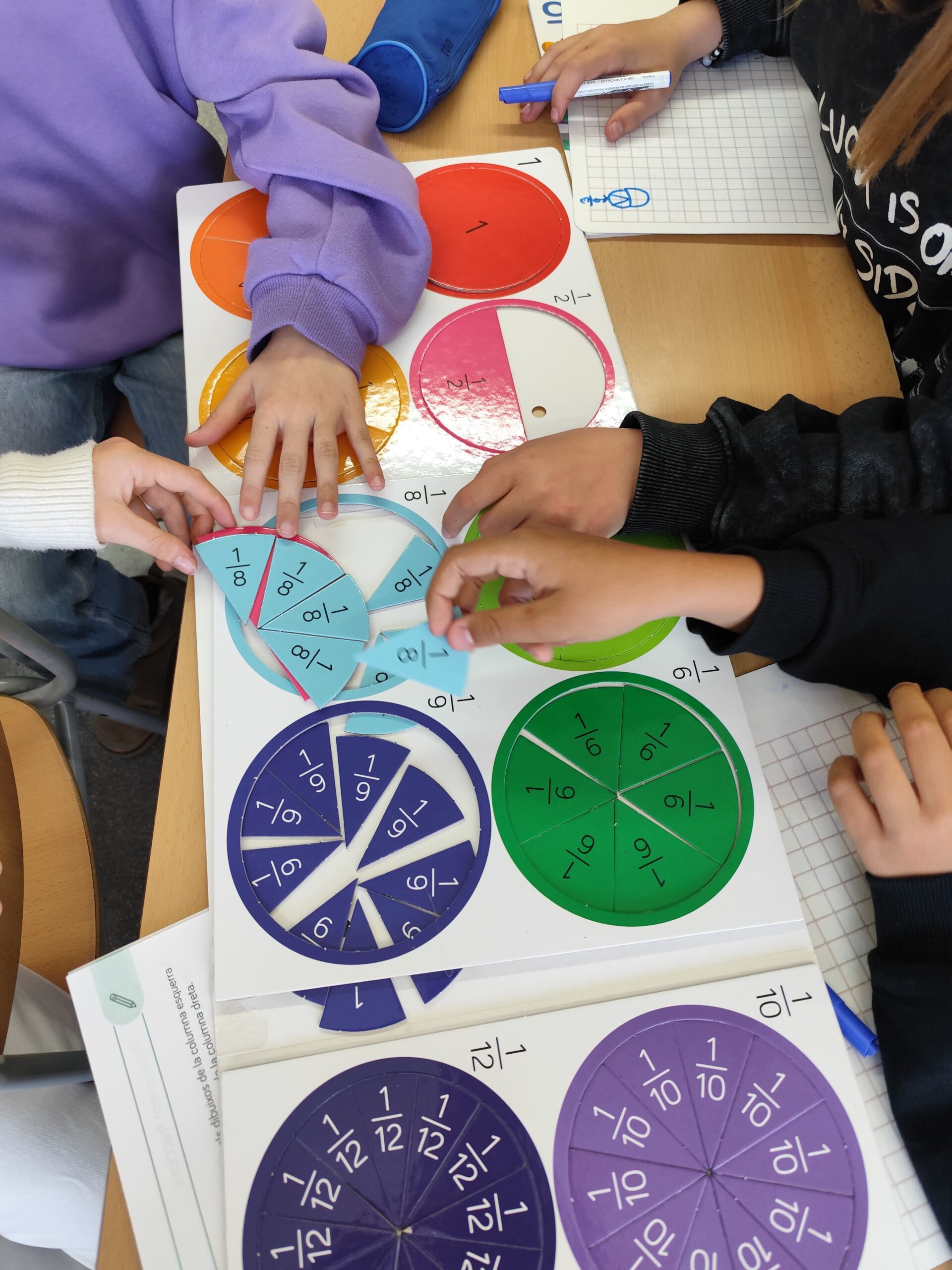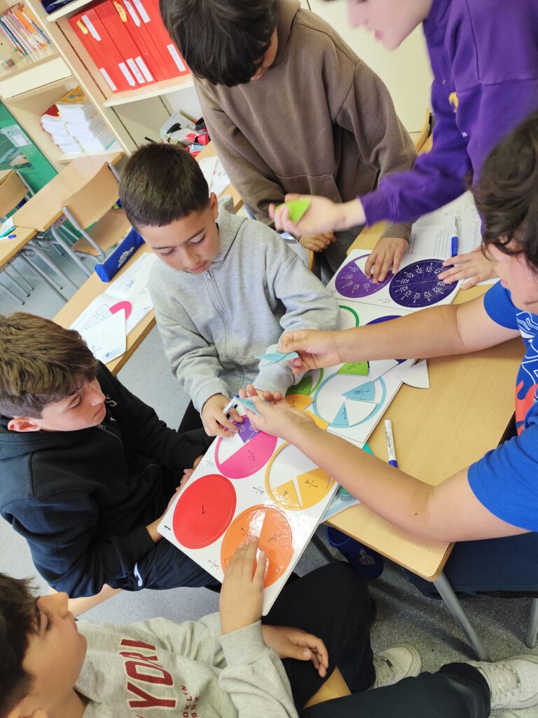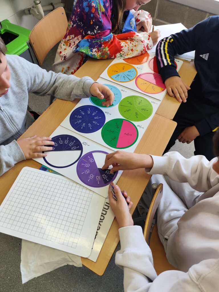 A classe de 5è estem treballant les fraccions amb material manipulatiu perquè l’alumnat en pugui entendre millor el significat d’una manera visual i pràctica. Mitjançant peces, figures, regletes i altres recursos, els infants poden veure com es divideix una unitat en parts iguals, comparar fraccions i comprendre conceptes com la meitat, el terç o el quart amb més facilitat.