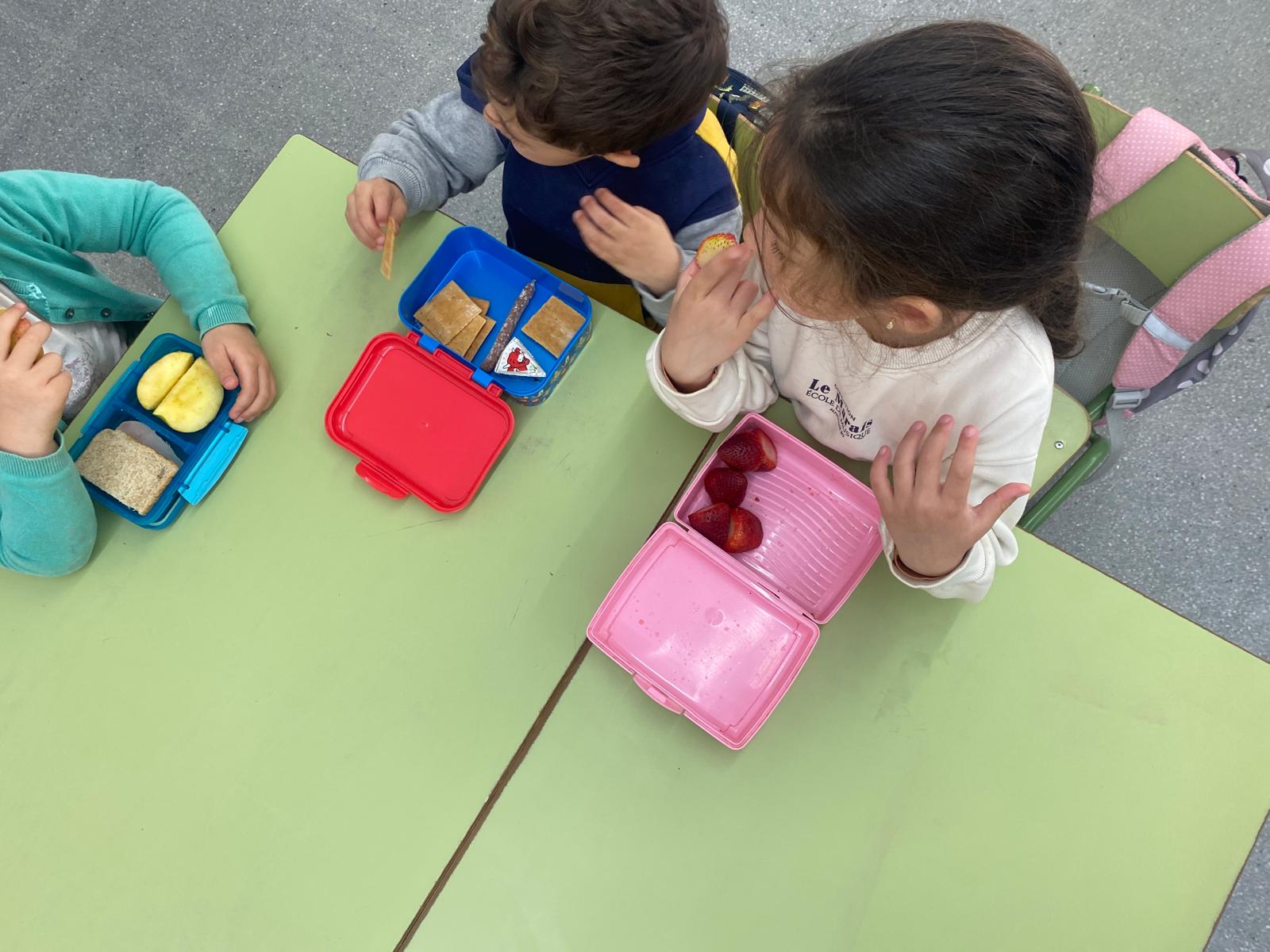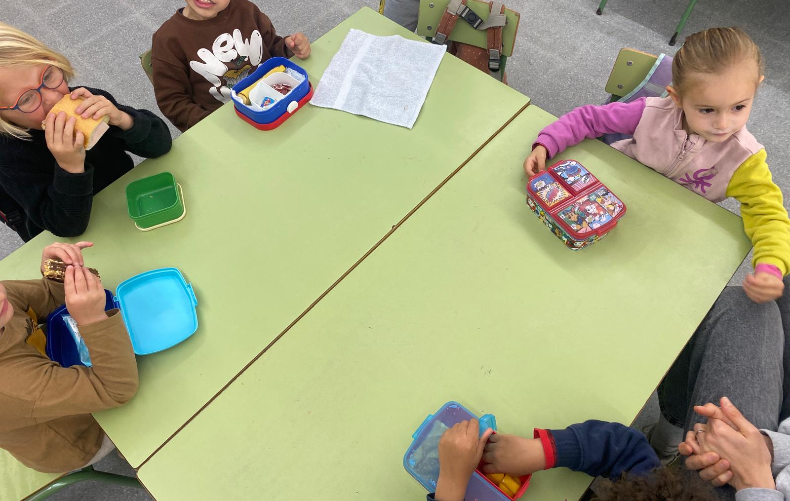 La importància d’una alimentació saludable des de ben petits és tan important fer-la a casa com a l’escola. És per això que a educació infantil promovem els esmorzars saludables des que arriben a l’escola. Els infants i famílies saben quins aliments són recomanables i adients per portar a l’escola. El fet de fer un esmorzar conjunt i mantenir converses sobre el que han portat els infants, fa que entre ells i elles es facin d’exemple, es treballi el vocabulari dels aliments en les diferents estacions i puguin agafar idees per explicar a casa.