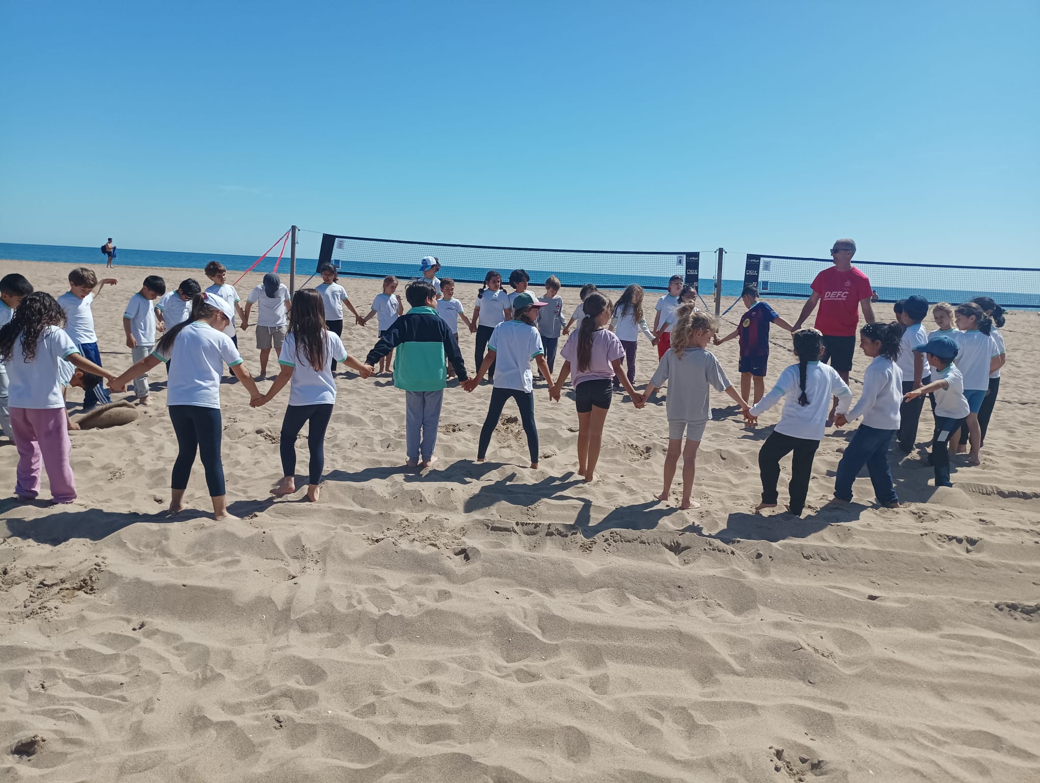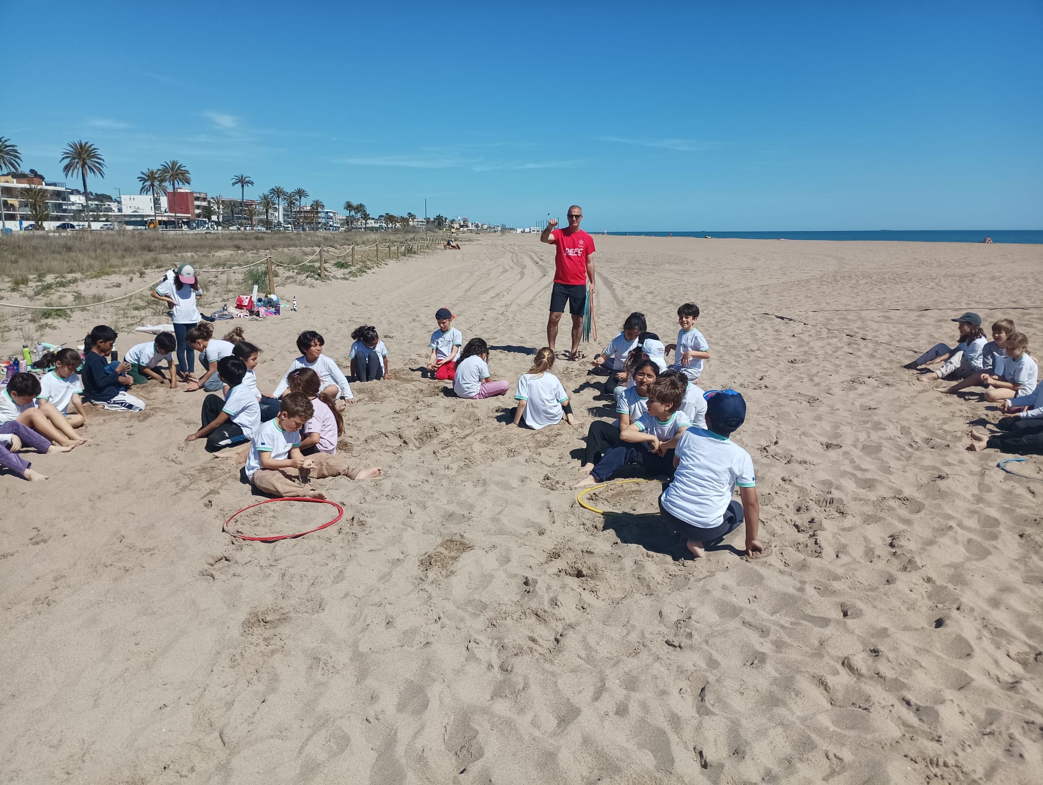 Per celebrar el DEFC (Dia de l’EF al carrer), aquest 17 d’abril a la sessió d’EF de la tarda els infants de 2n han fet classe a la platja. Gaudim del nostre entorn i sortim al carrer a mostrar una sessió.