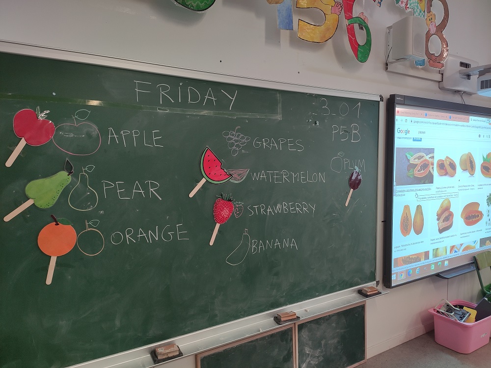 In English class we have read the book “The very hungry caterpillar” and we liked a lot.We have learned the name of many fruits in English!!