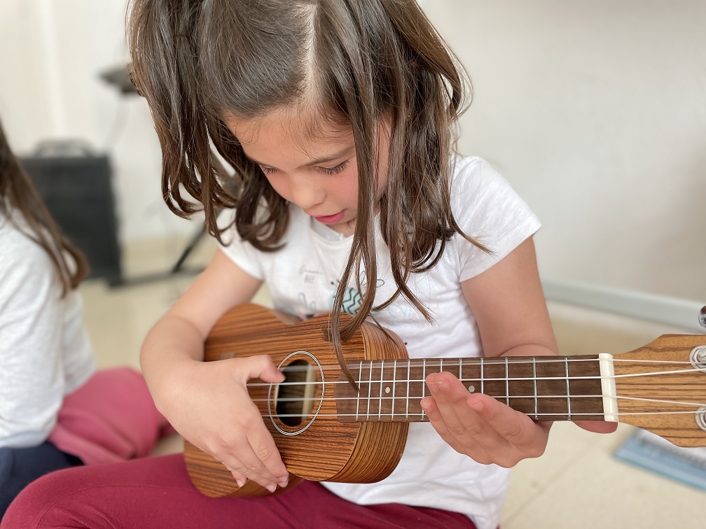 Tenim un tercer trimestre molt curt, però carregat de música. Així que de cantar, ballar i tocar, no podem parar. A l’espai de música de la comunitat de petits hem celebrat Sant Jordi amb cançons i representacions d’allò més originals. Per primera vegada, hem tocat una cançó amb l’ukelele. És molt divertida, ens parla d’una